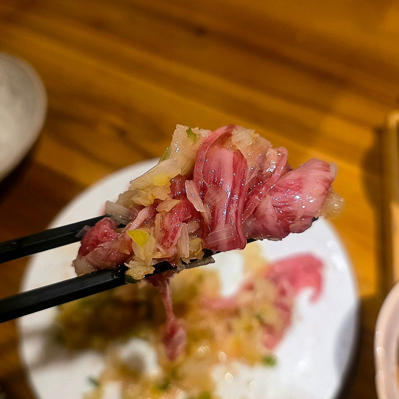 そして現れたのが、神々しく輝く「和牛ユッケ」。