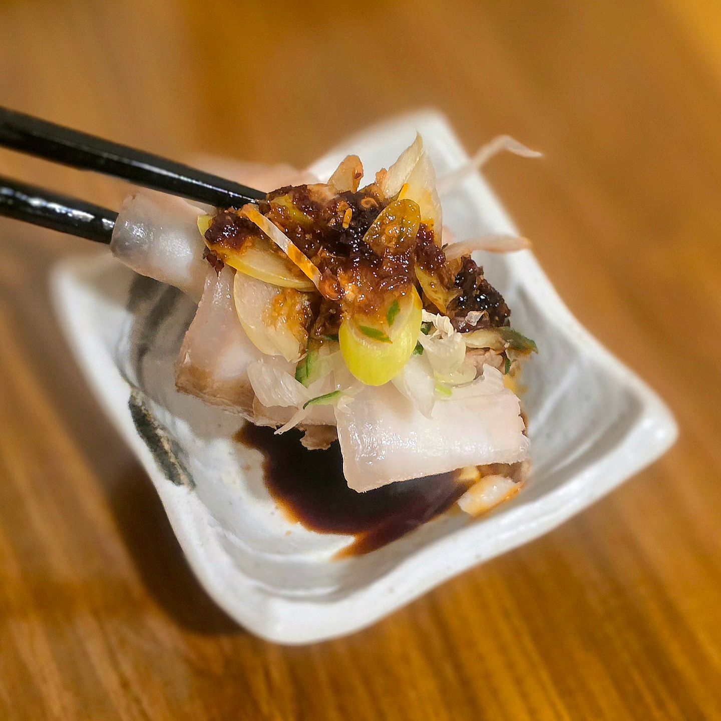 あそばれのよだれ鶏は、しっとり柔らかい鶏にスパイシーな辣油ソースが絡み、辛味・旨味・香りが三位一体。白ご飯が欲しくなるタイプ。