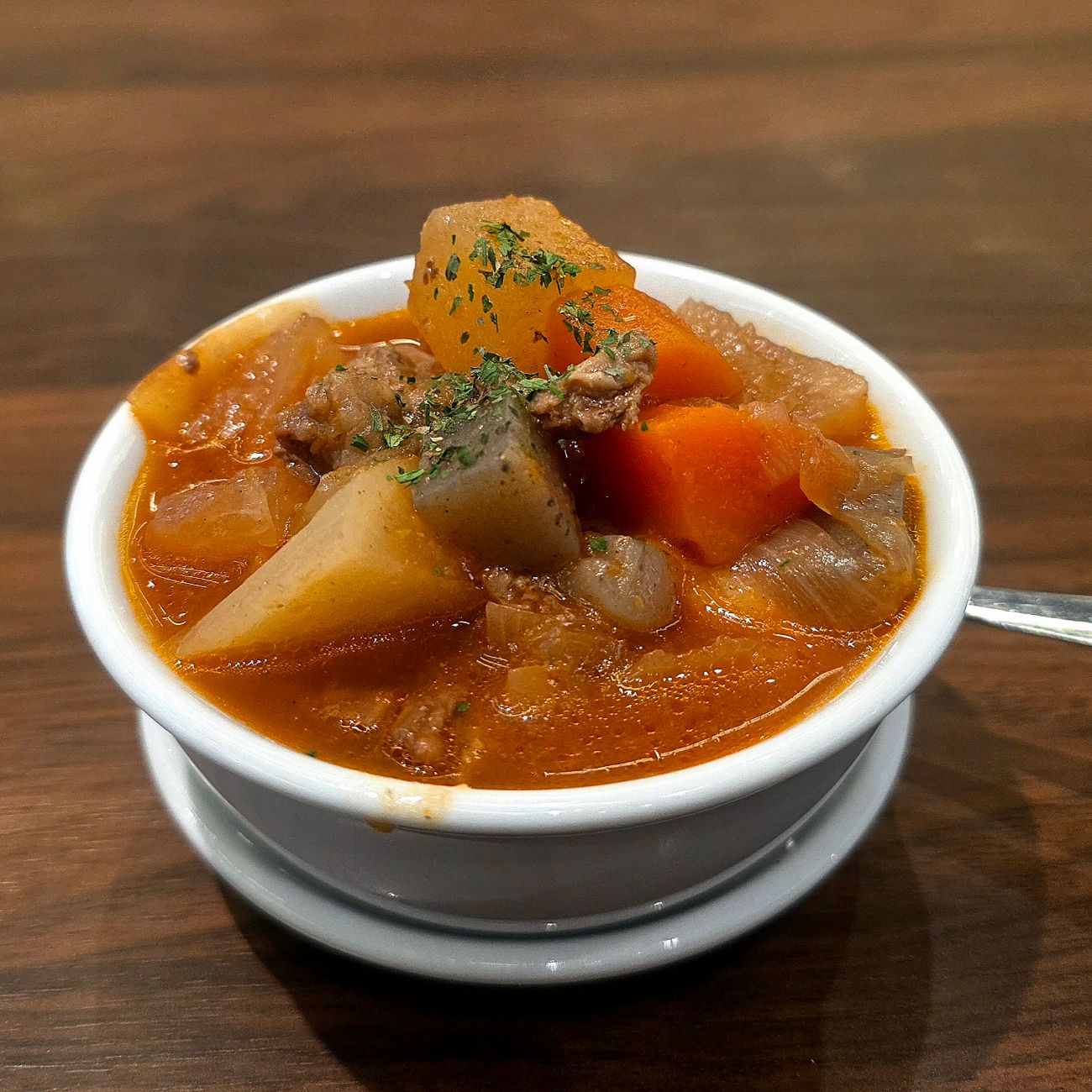 続いて「煮込み(179円)」。トマトベースのやさしい味わいで、ホロホロに崩れる肉と豆腐