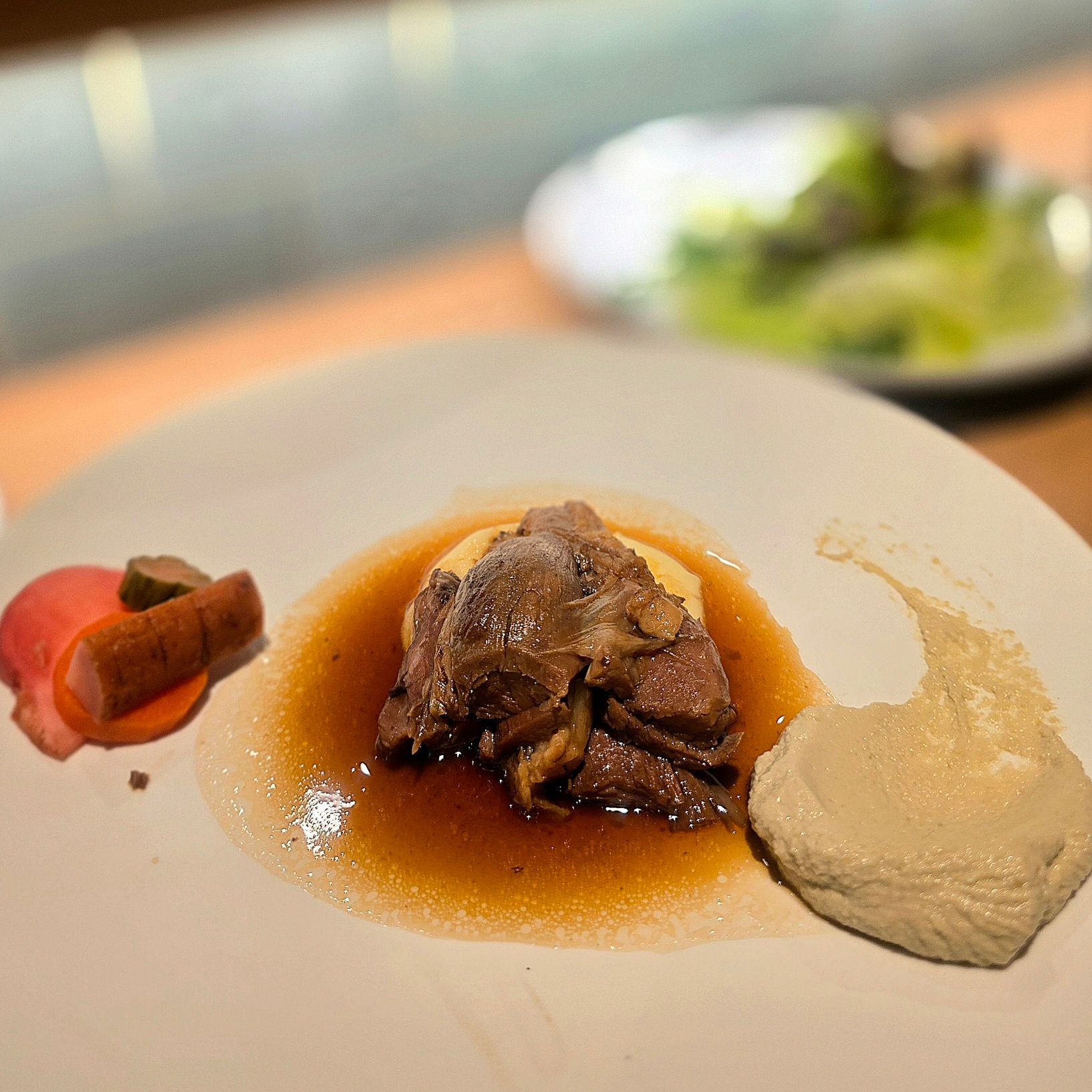 しかも、煮込みに添えられたグリーンオリーブソースをつけると、その味わいがまた別次元に。オリーブの香りと塩味が、羊肉の甘みと重なって、味わいの層が深くなります。
