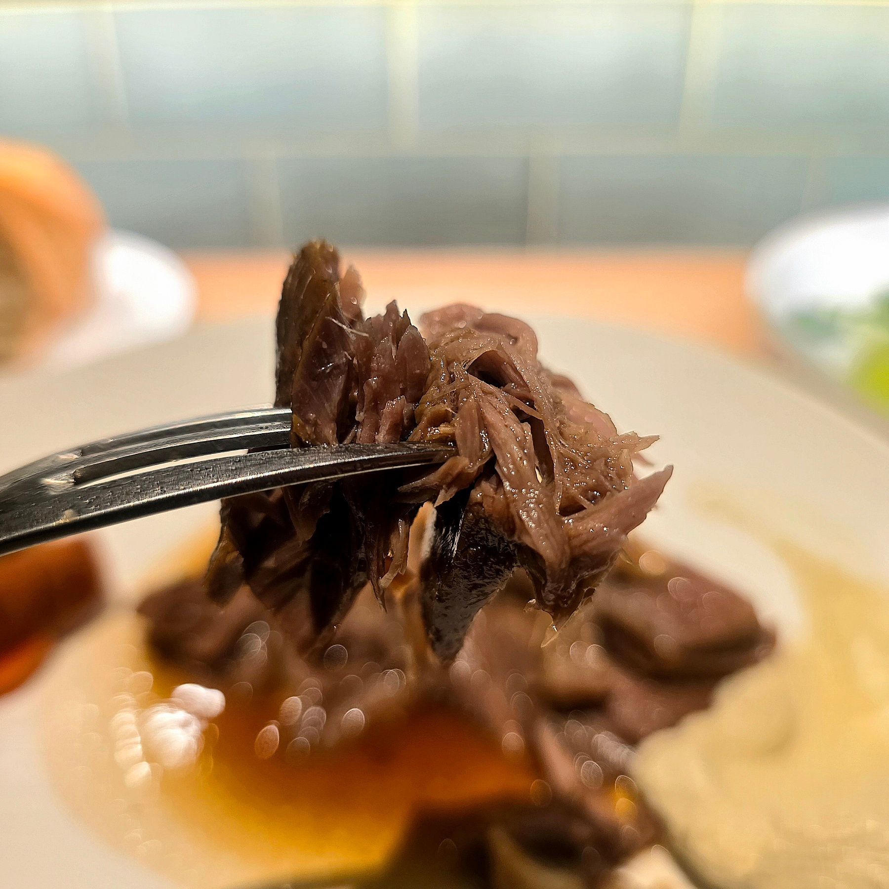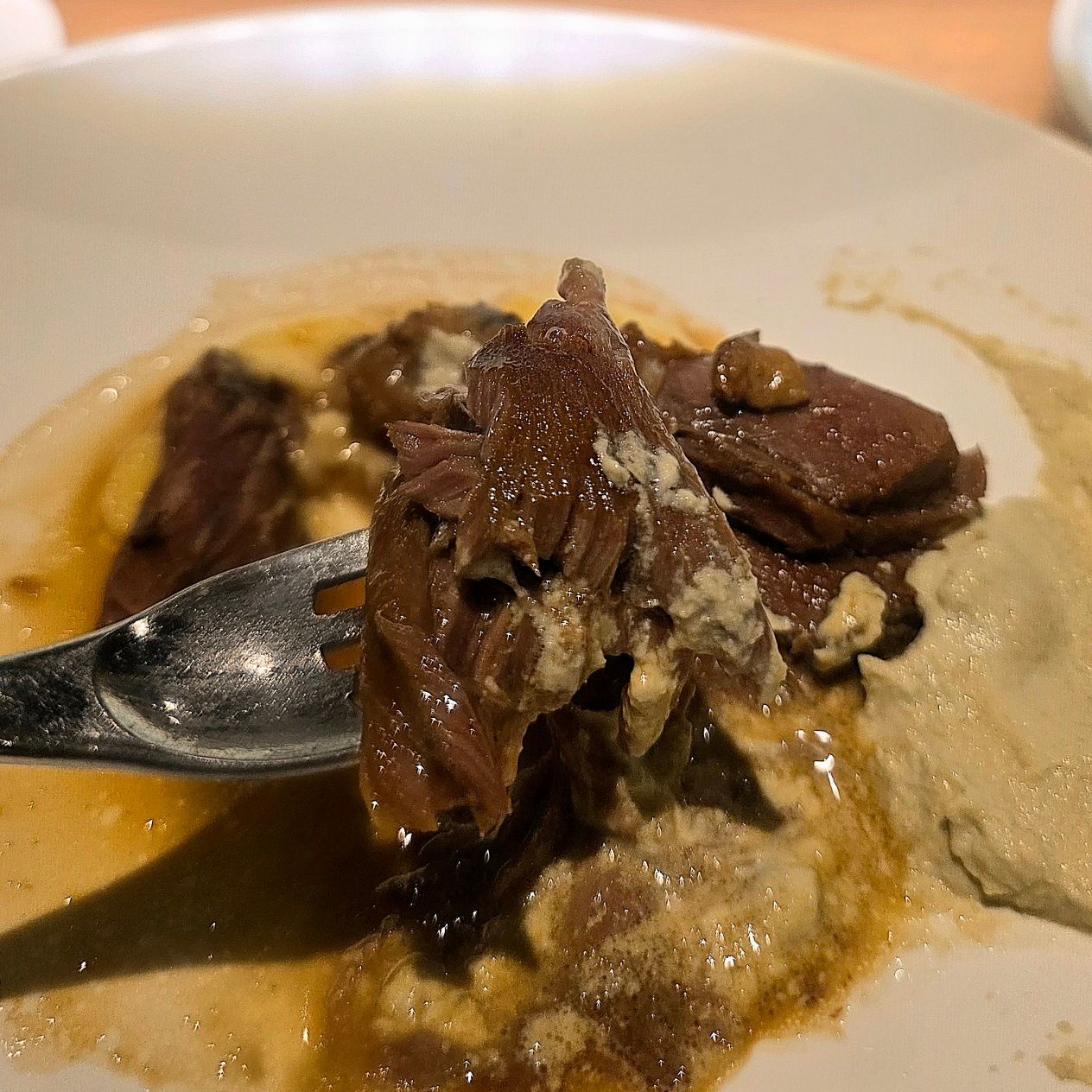 ナイフを当てるとすっと切れて、口に入れるとほろほろと崩れ、羊肉ならではの風味がふわりと広がります。