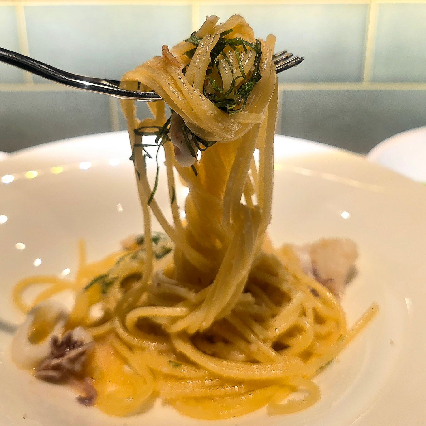 噛むたびに小麦の甘み、明太の塩気とコク、バターのまろやかさ、白イカの歯ごたえ。重くなりすぎず、それでいて満足感がある。まさに「これ、美味しい」と声が漏れるパスタでした。