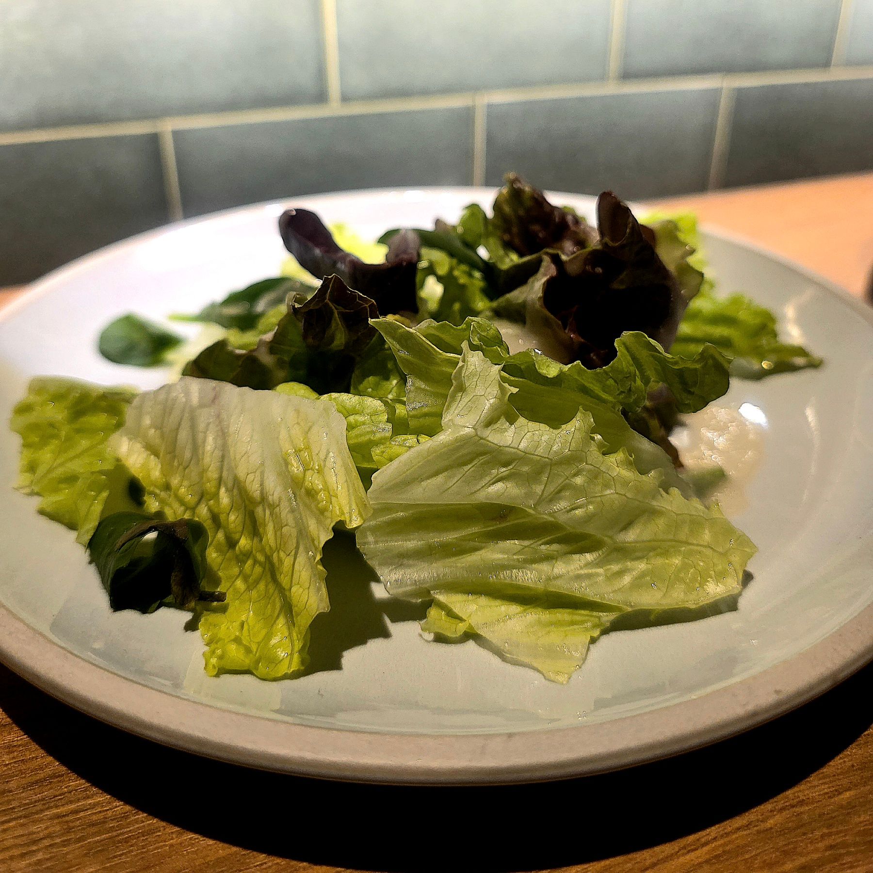 ランチにはバケット、サラダとコーヒーもついていて、満足感とお得感が両立。量も丁度よく、妻と分けても「もうひと口、もうひと口」と自然に手が伸びます。