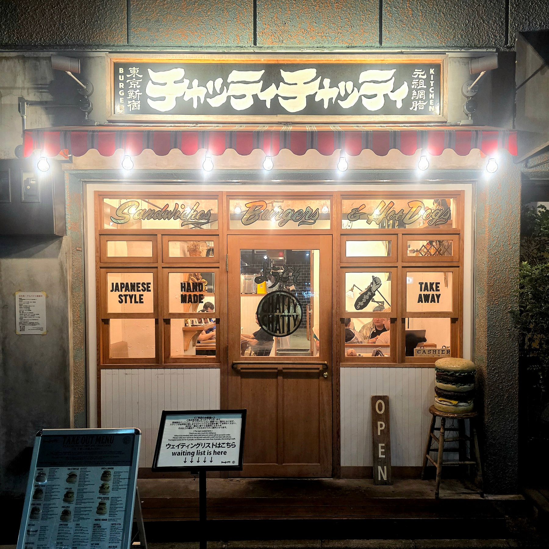 仕事を終え、夜の街にふらりと出かけた先に待っていたのは、「CHATTY CHATTY(チャッティ チャッティ)」。ハンバーガー好きなら一度は耳にする、食べログの「ハンバーガー百名店」に複数回選ばれている人気店です。]