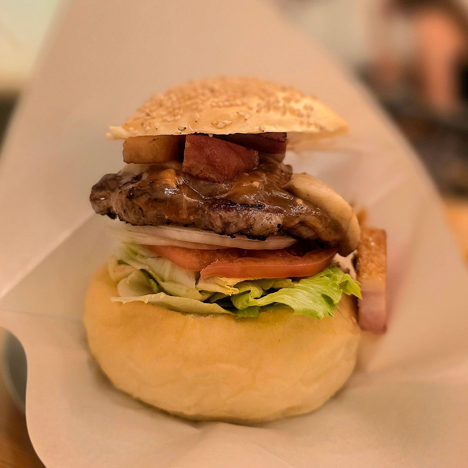 そして、主役のパティ。粗挽きで、クラシックなステーキのような食感があり、噛むほどに肉汁がじゅわっと。旨味と脂がガツンと来るタイプではなく、じんわりと余韻を残す美味しさです。バンズと具材のバランスもよく、どこか優しさを感じる味わい。