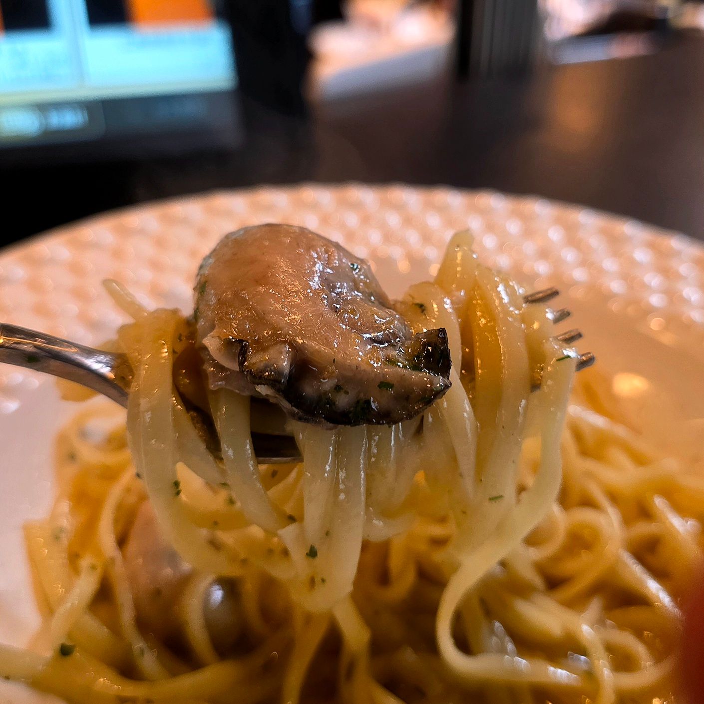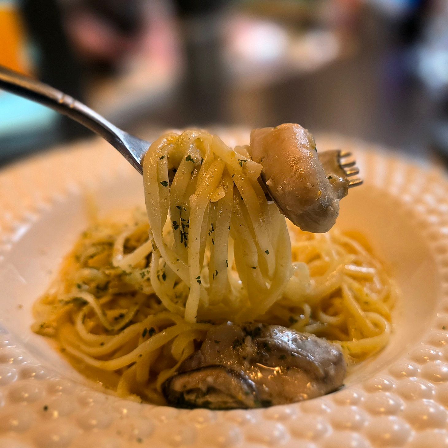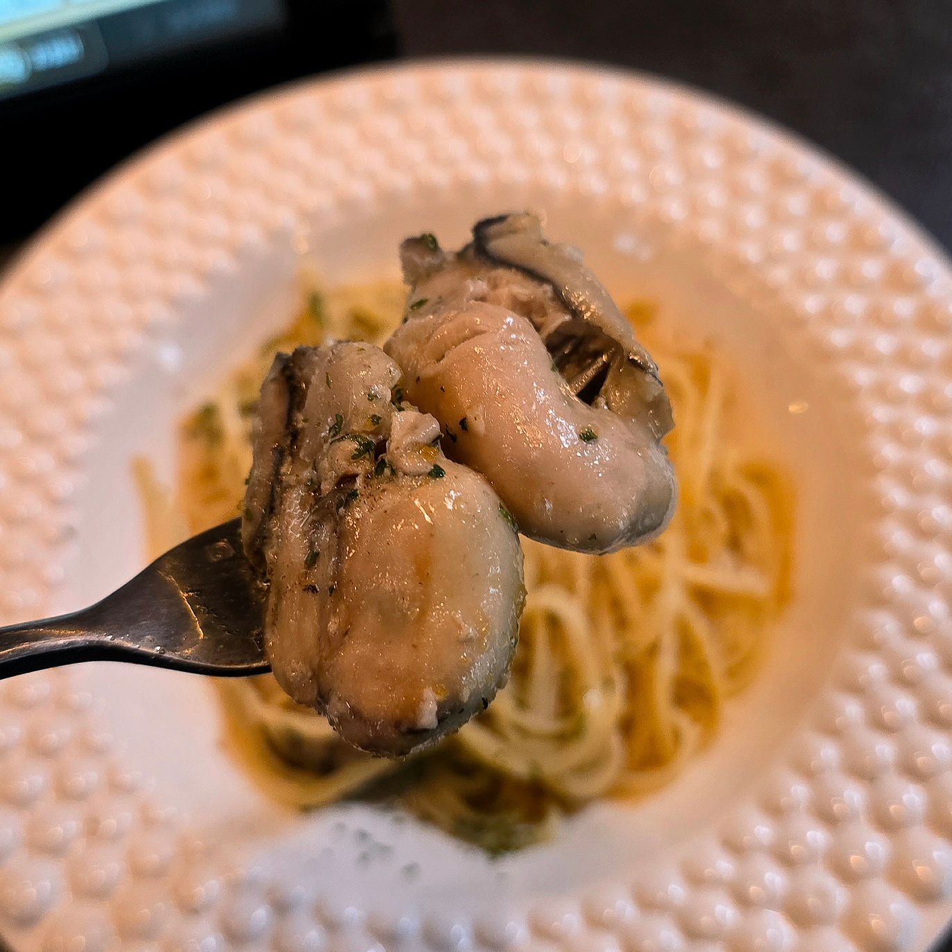 もちっとした麺をすすれば、牡蠣の濃厚な旨みとニンニクの香りが一体になって広がります。