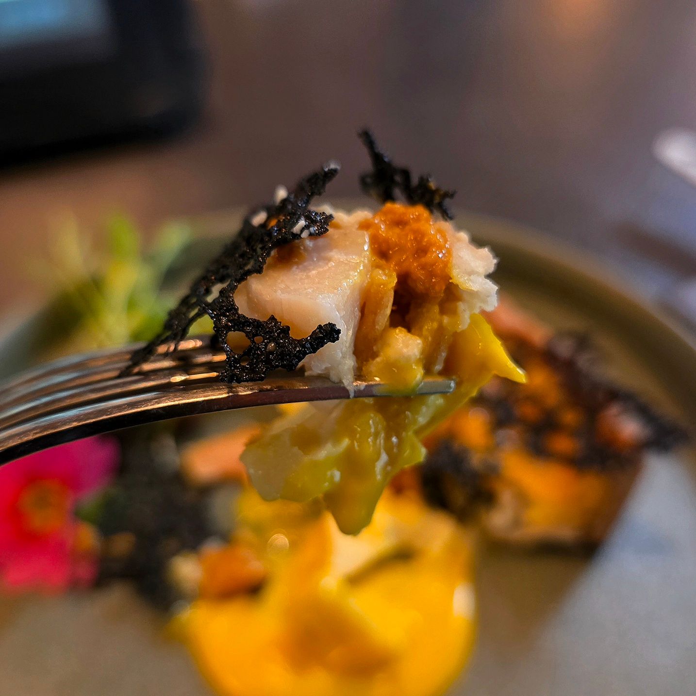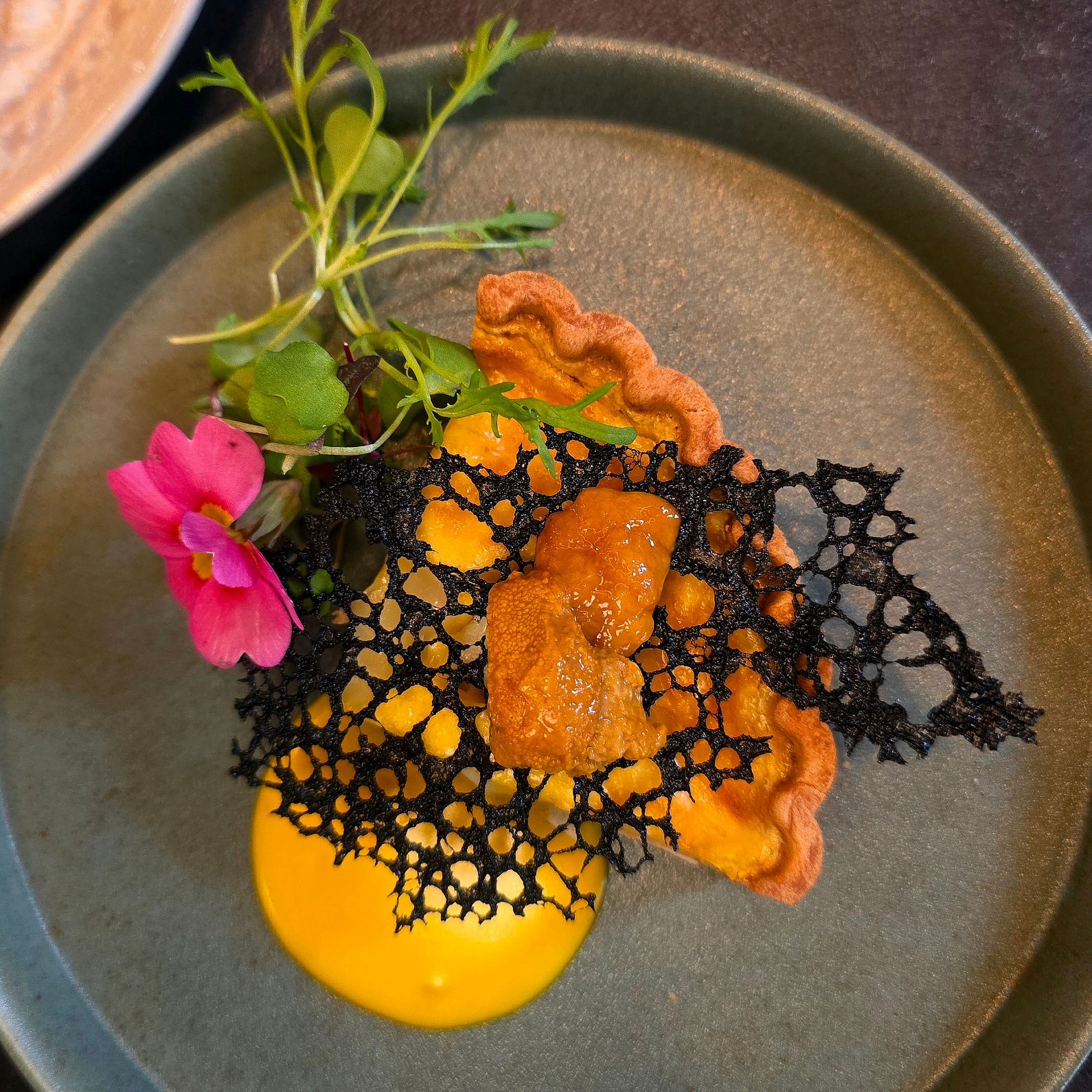 濃厚なウニのコク、甘みのあるホタテ、そこにサフランソースの香りが重なって、ひと口ごとに味の層が広がります。