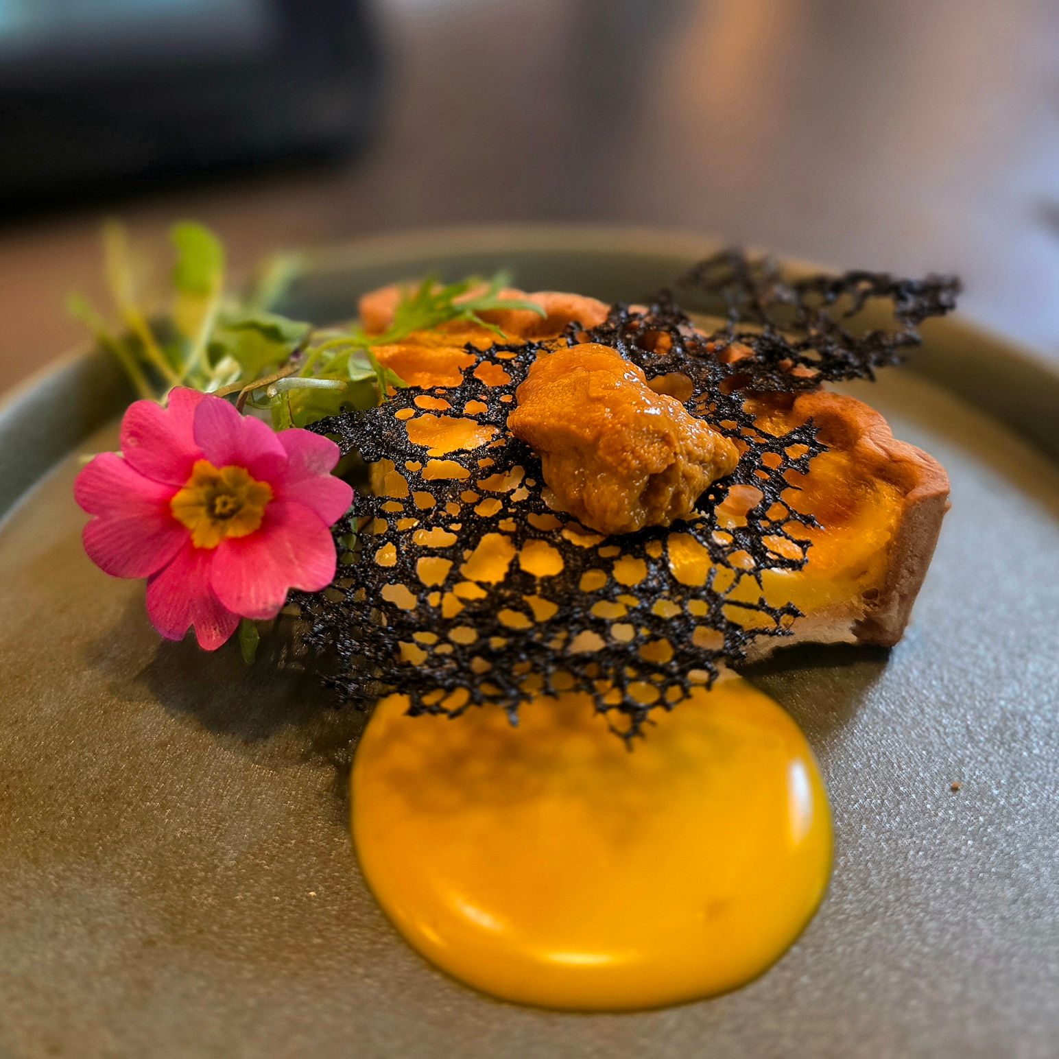 続いて前菜の「ウニとホタテのキッシュ サフランソース」。