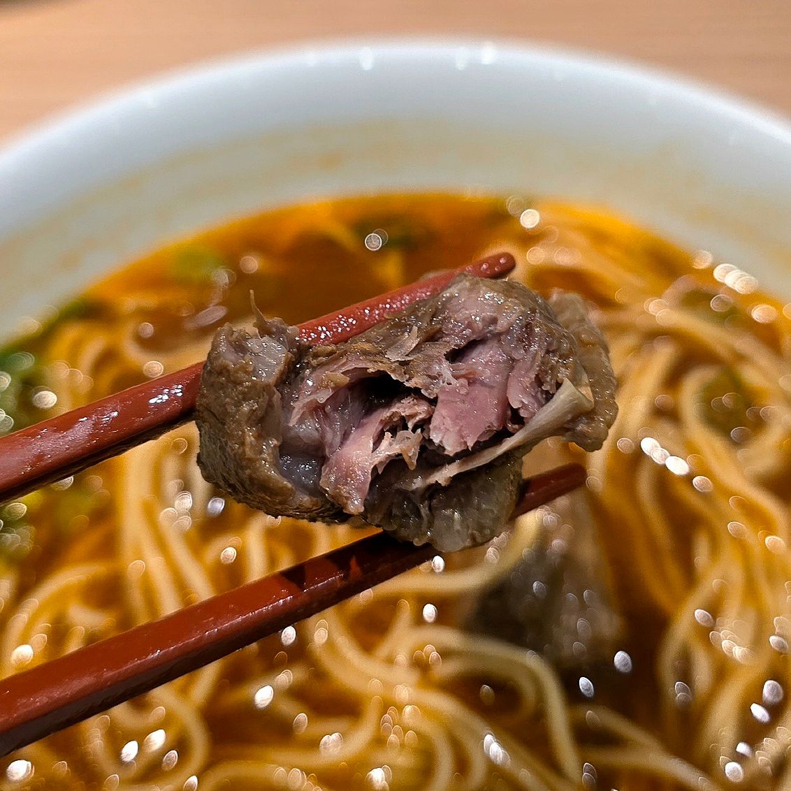 ホロホロとほどける牛肉を箸でつまみながら、ひと口。深い旨みが舌裏に残ります。