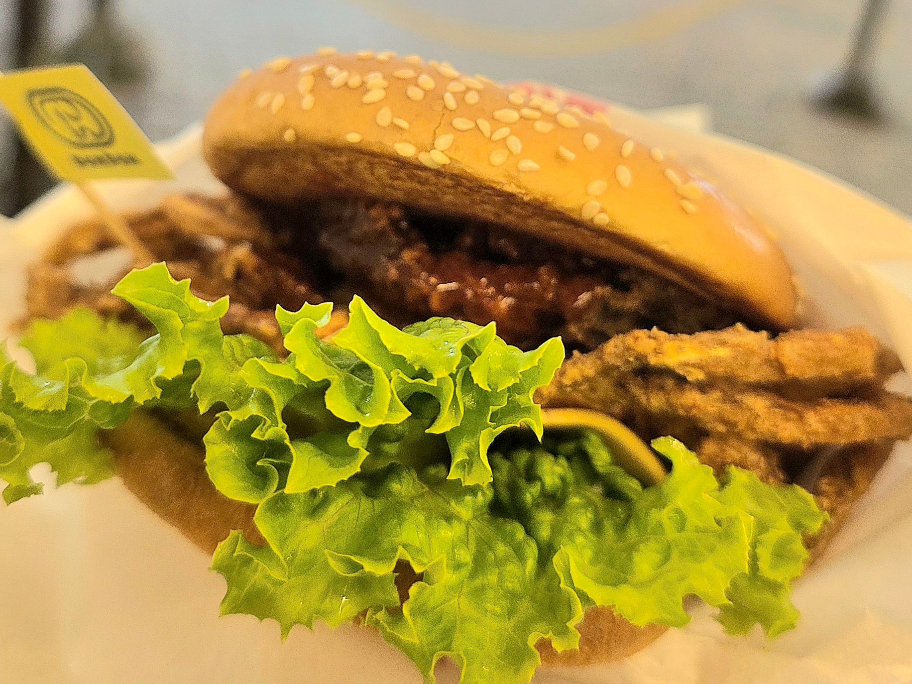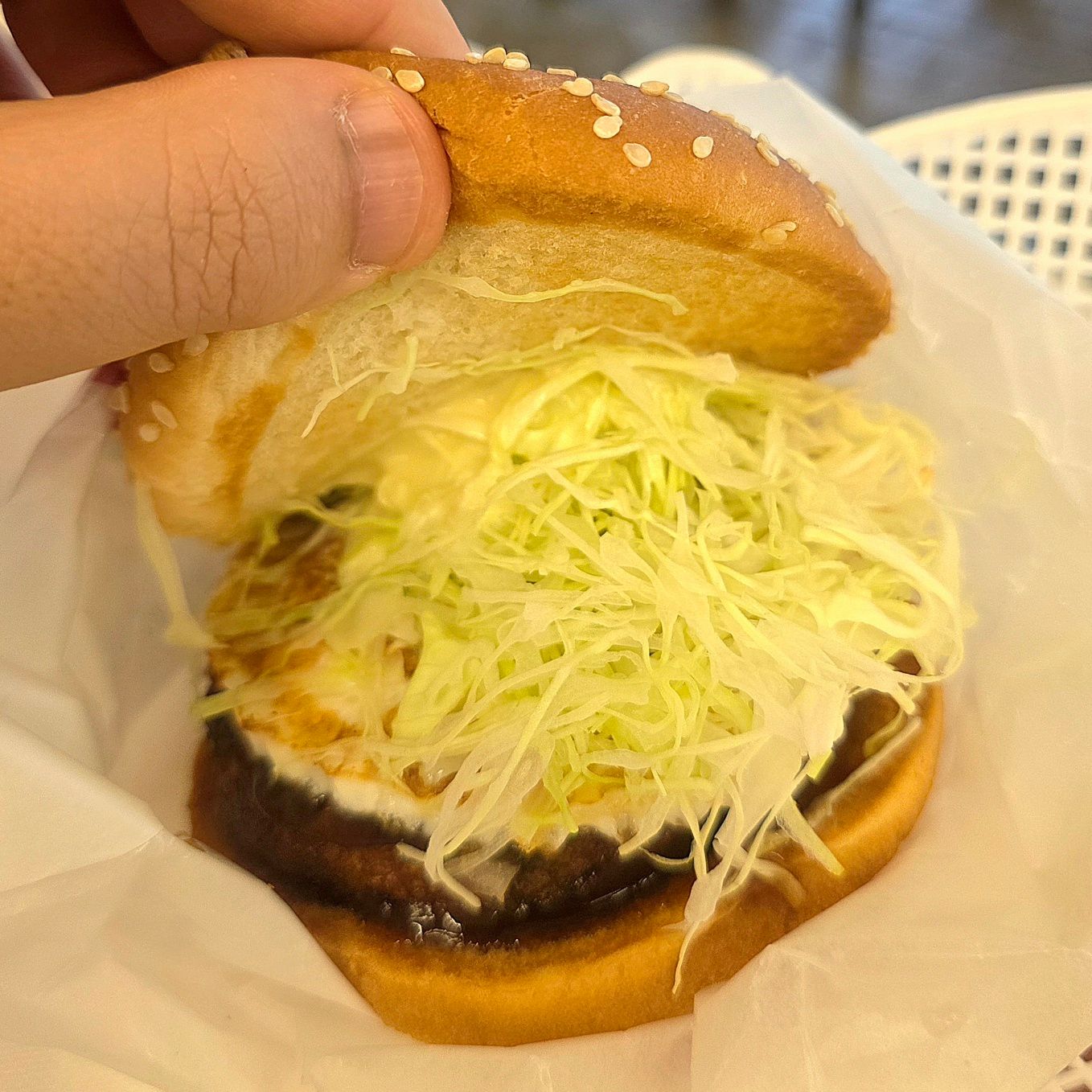 「お好み焼きバーガー」はバンズ+お好み焼きという炭水化物×炭水化物の禁断のバランス。