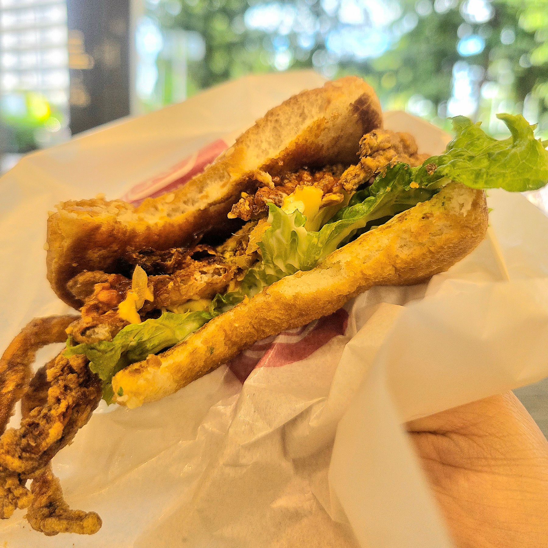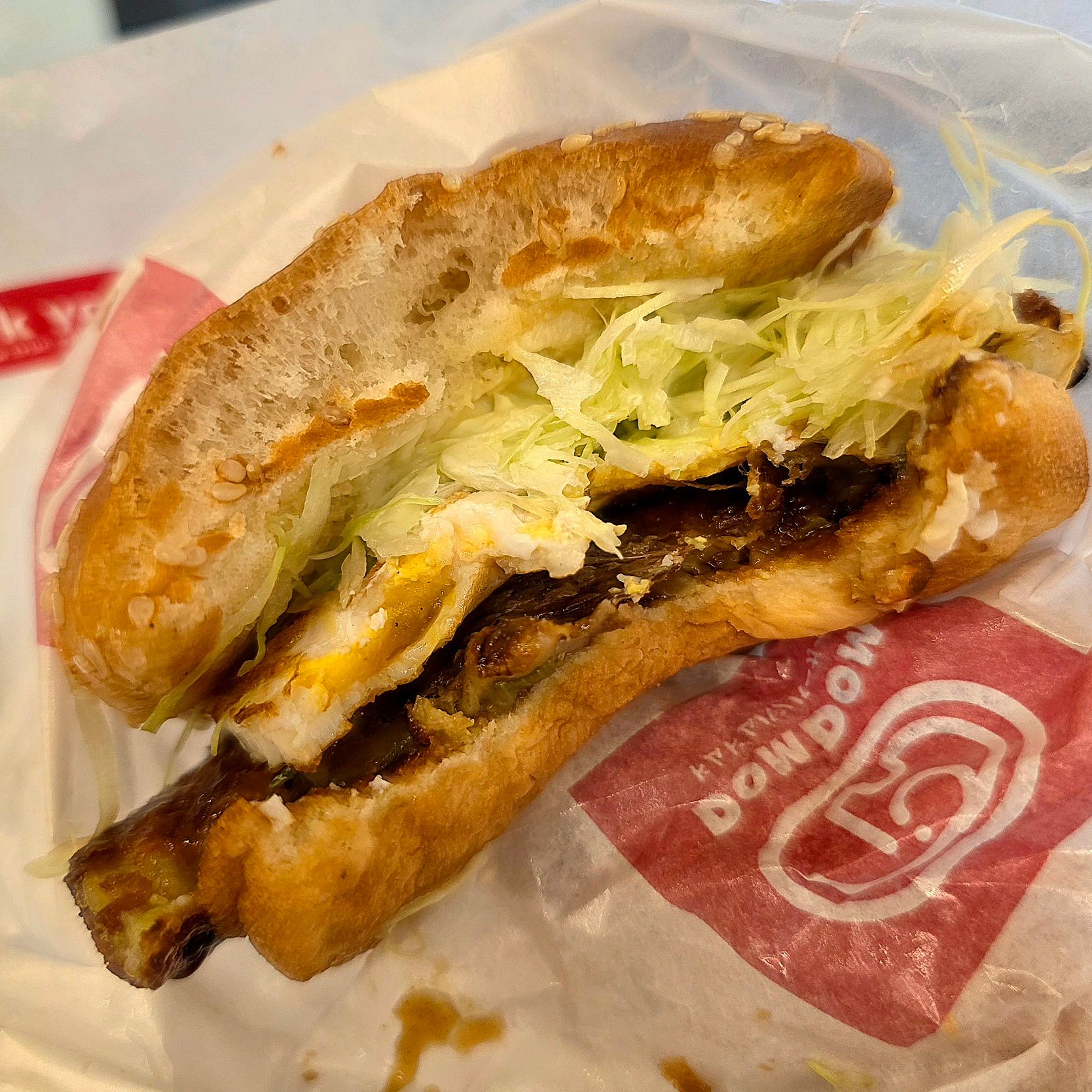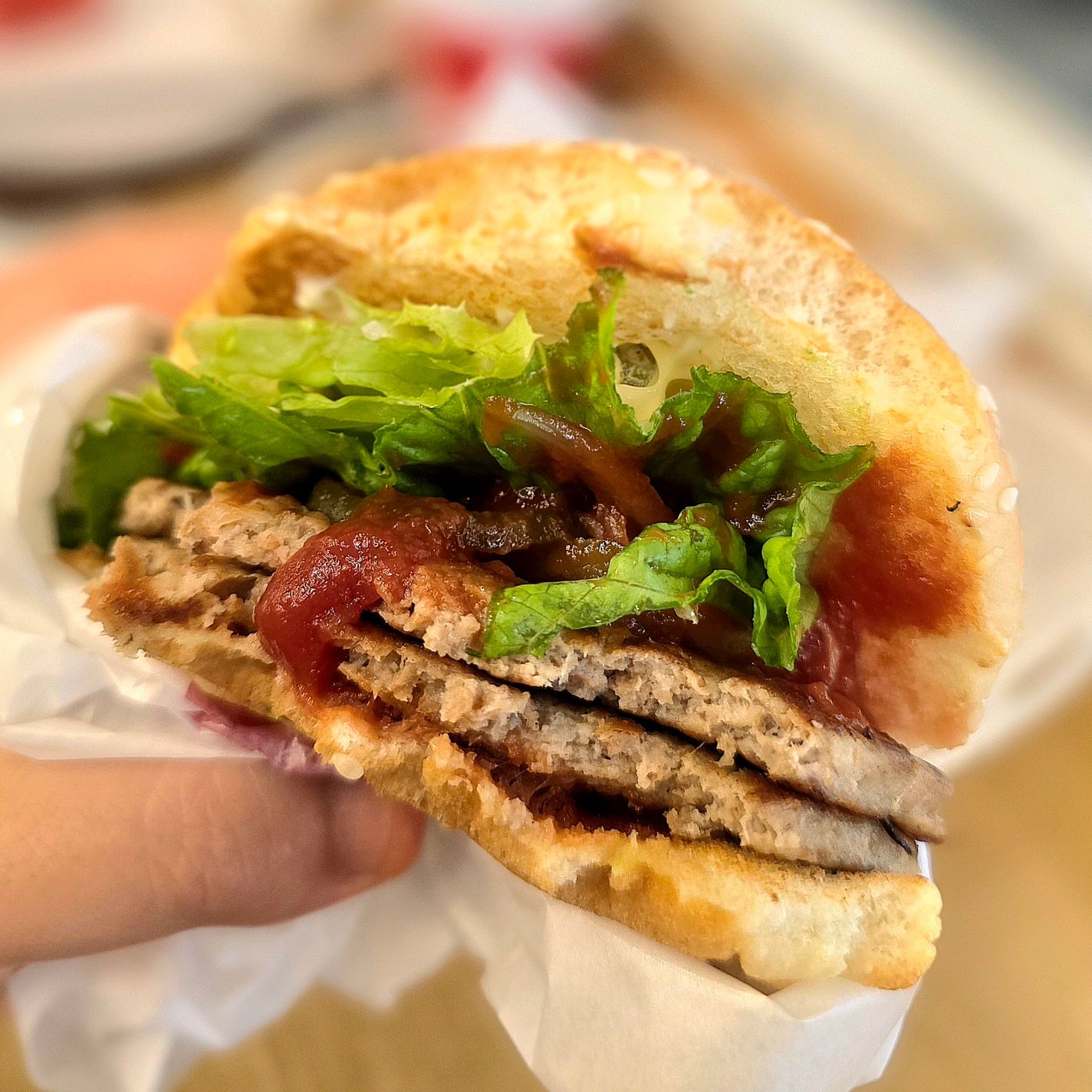 薄めのパティが2枚、チープ感たっぷりにバンズに挟まれた一品。見た目以上に味がしっかりしていて、不思議と旨さが際立ちます。