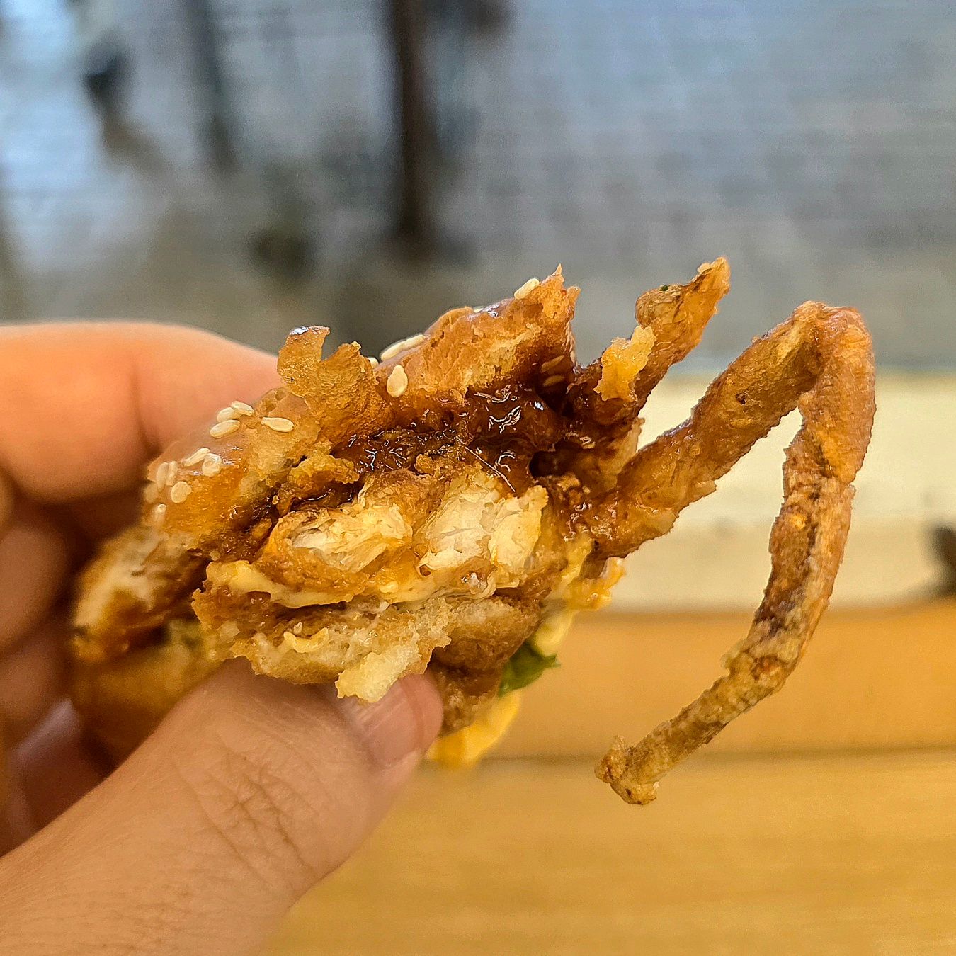 「カニバーガー」は「カニ丸ごと揚げ」という衝撃のバーガー。