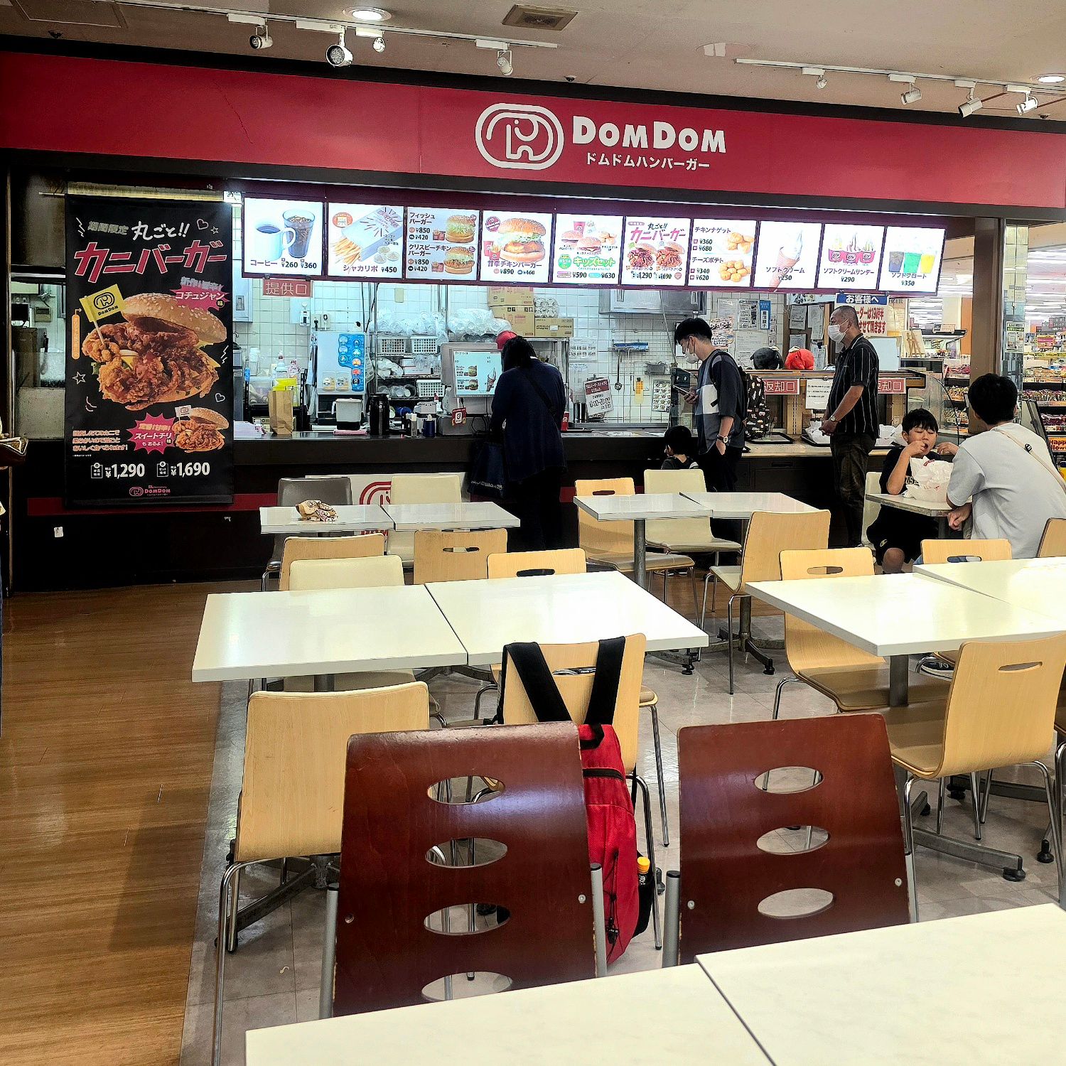 今日はふらりと、昭和な空気が漂うハンバーガー店「ドムドムバーガー 小平店」へ。西武多摩湖線「八坂駅」から徒歩約3分、イオンフードスタイル小平店の中にあるお店です。