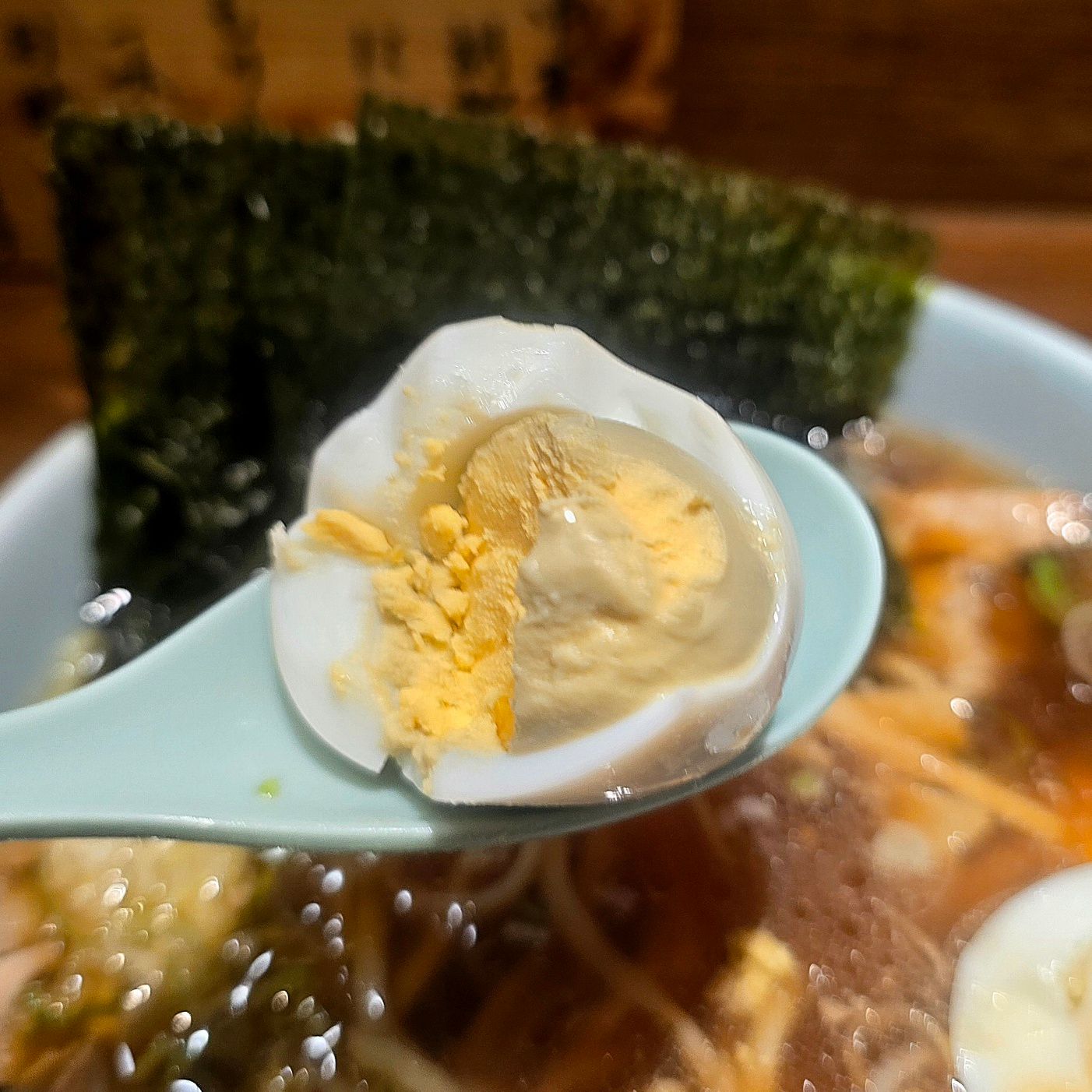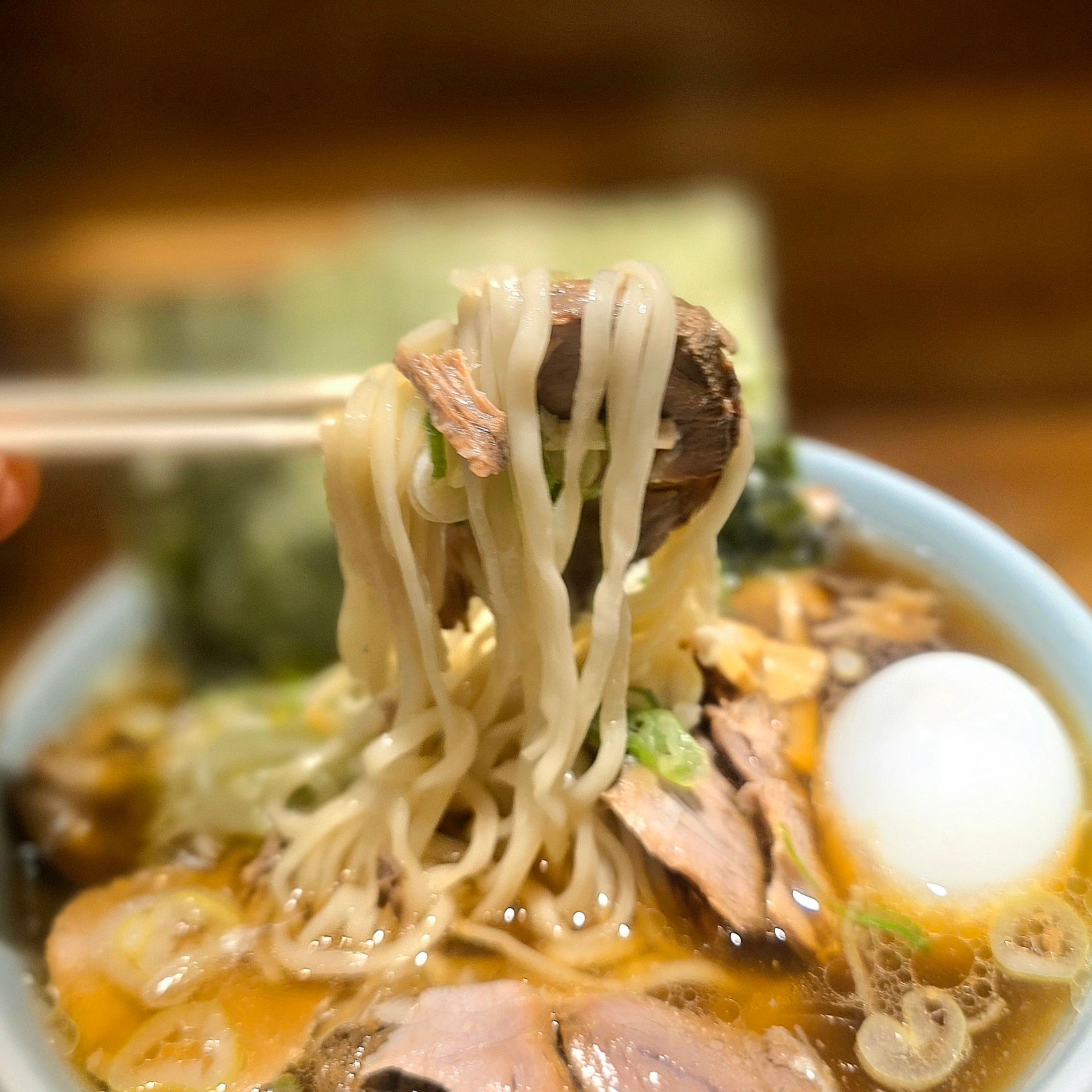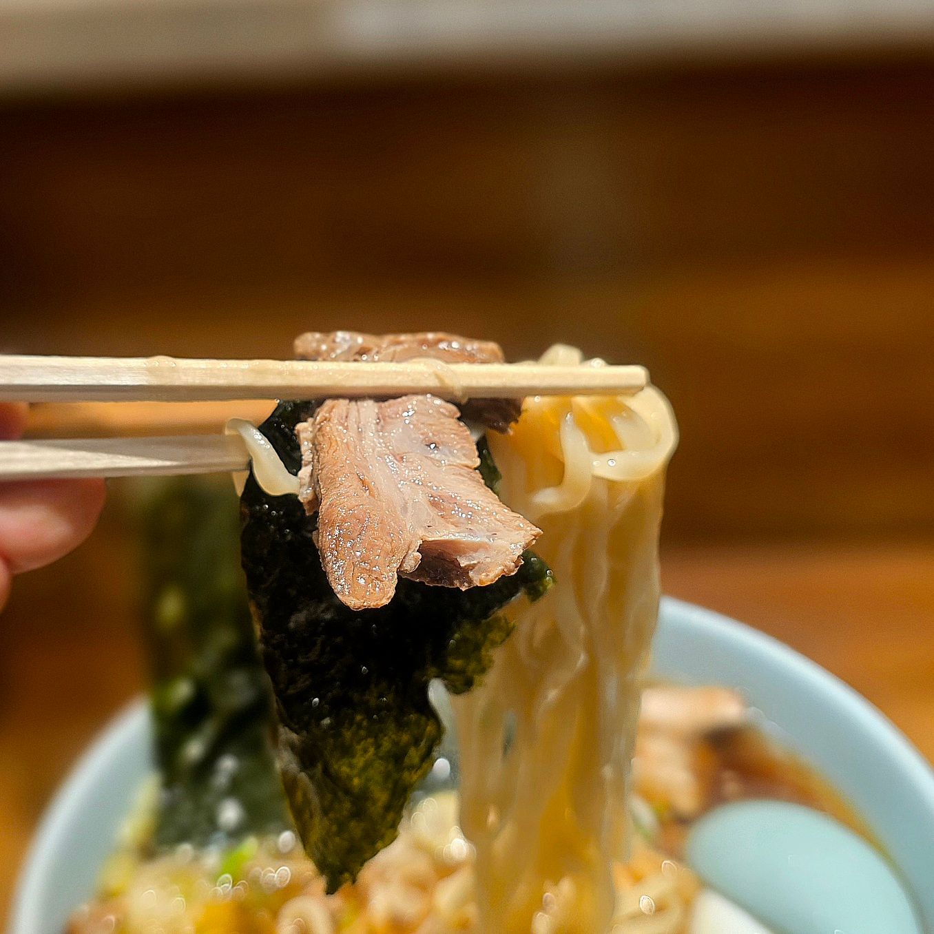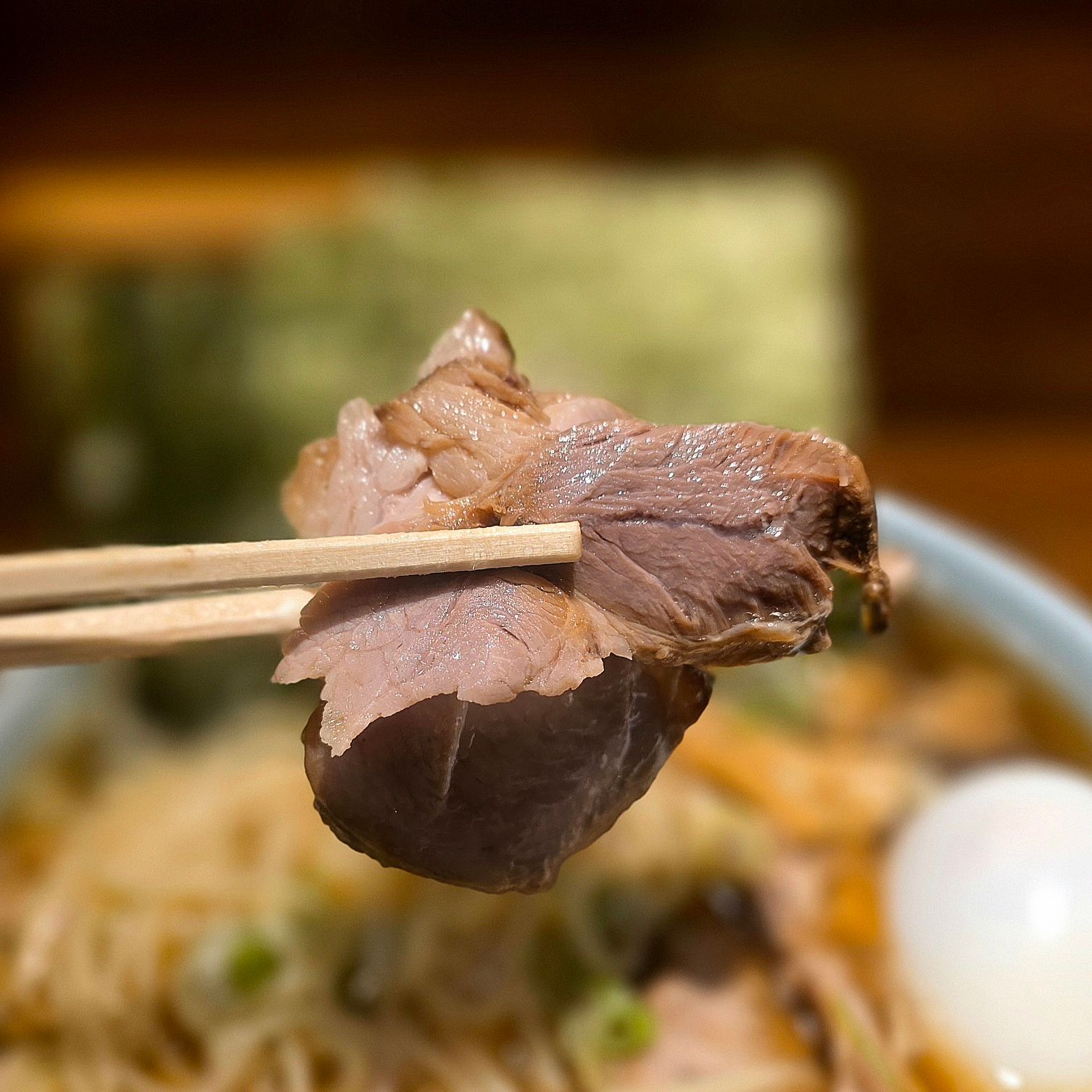 チャーシューを一緒に頬張ると、肉の香ばしさとスープの甘みが一体になって至福。お肉は肩ロース系で、よく熱が入って噛みごたえしっかり。しかも下のほうにまだまだ隠れてて、掘るたびに出てくるのが楽しい(笑)