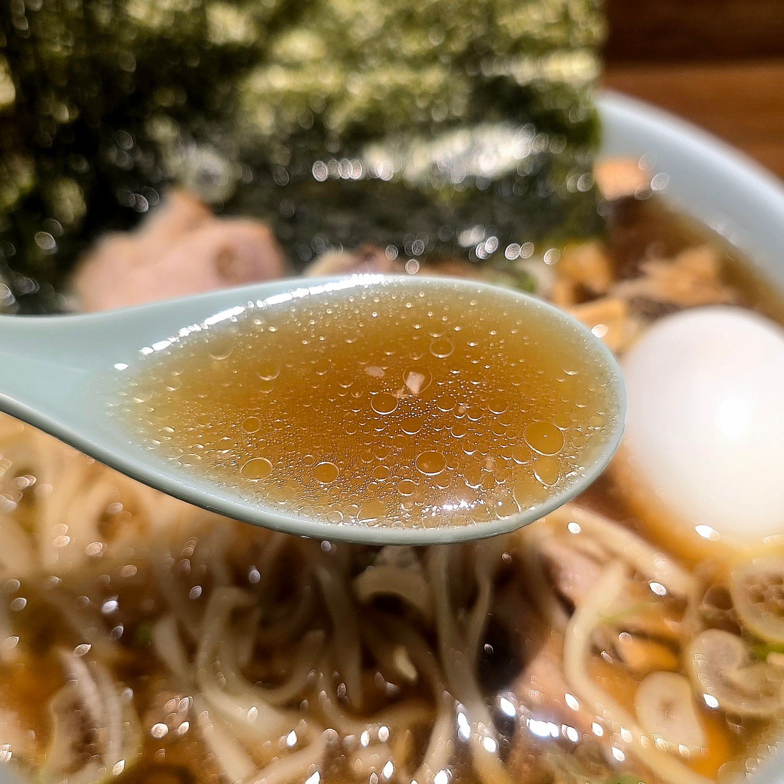 まずスープをひと口。透明なのにコクが深く、豚の旨みと醤油のキレがガツンときます。ちゃん系らしく、油の層がほどよく厚くて、パンチがありながらも後味がしつこくない。