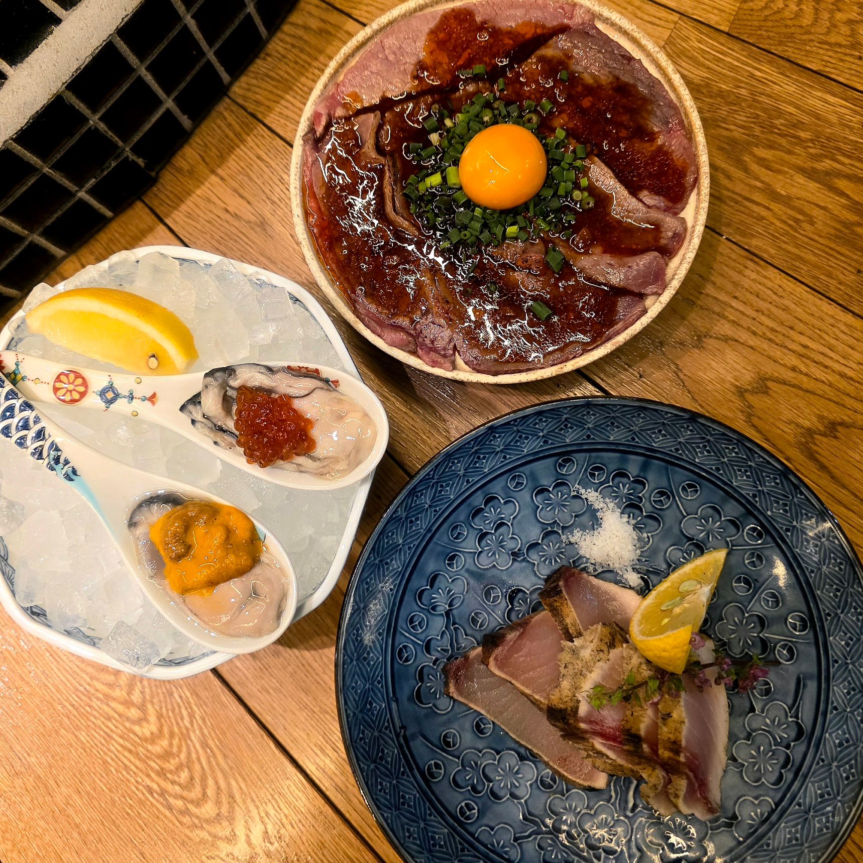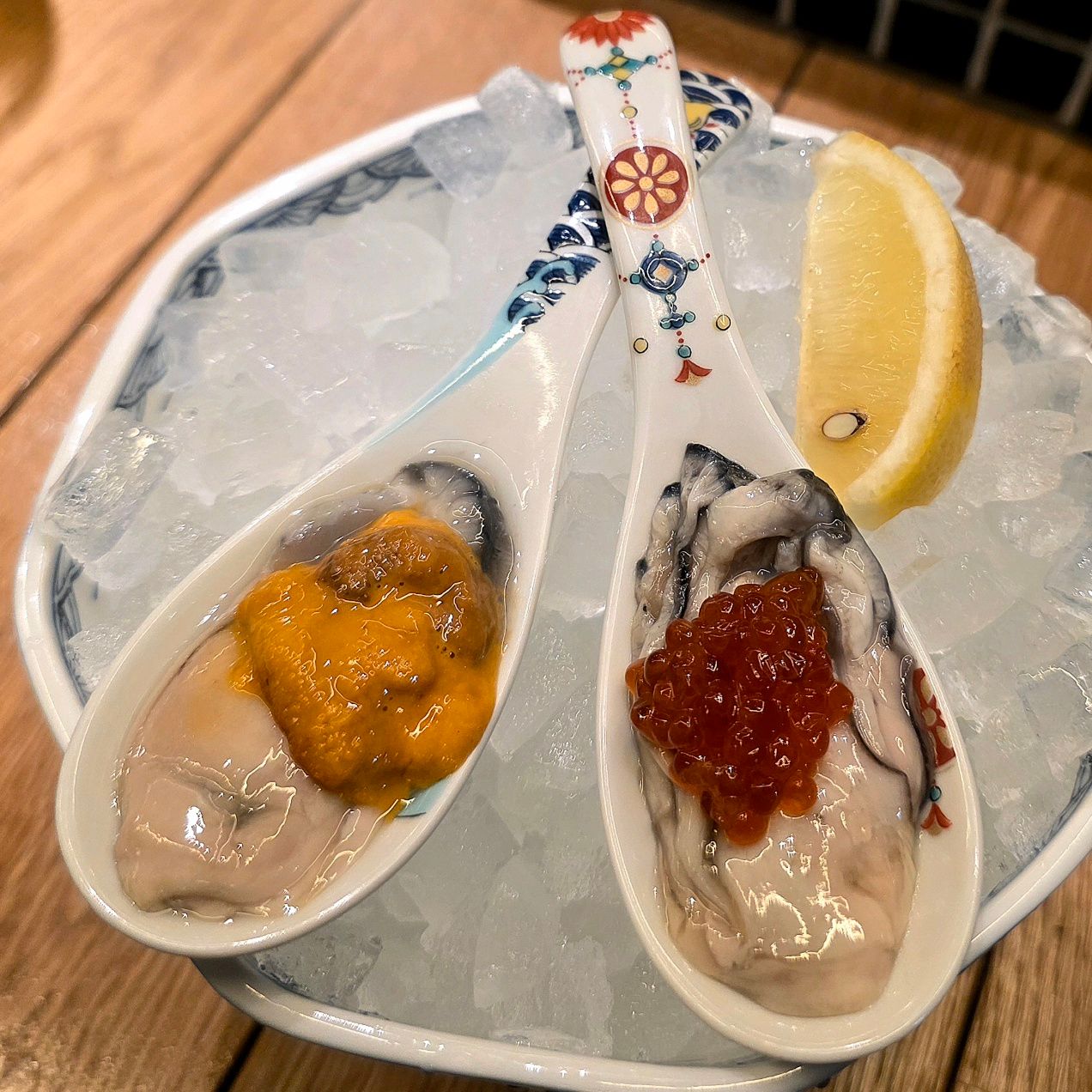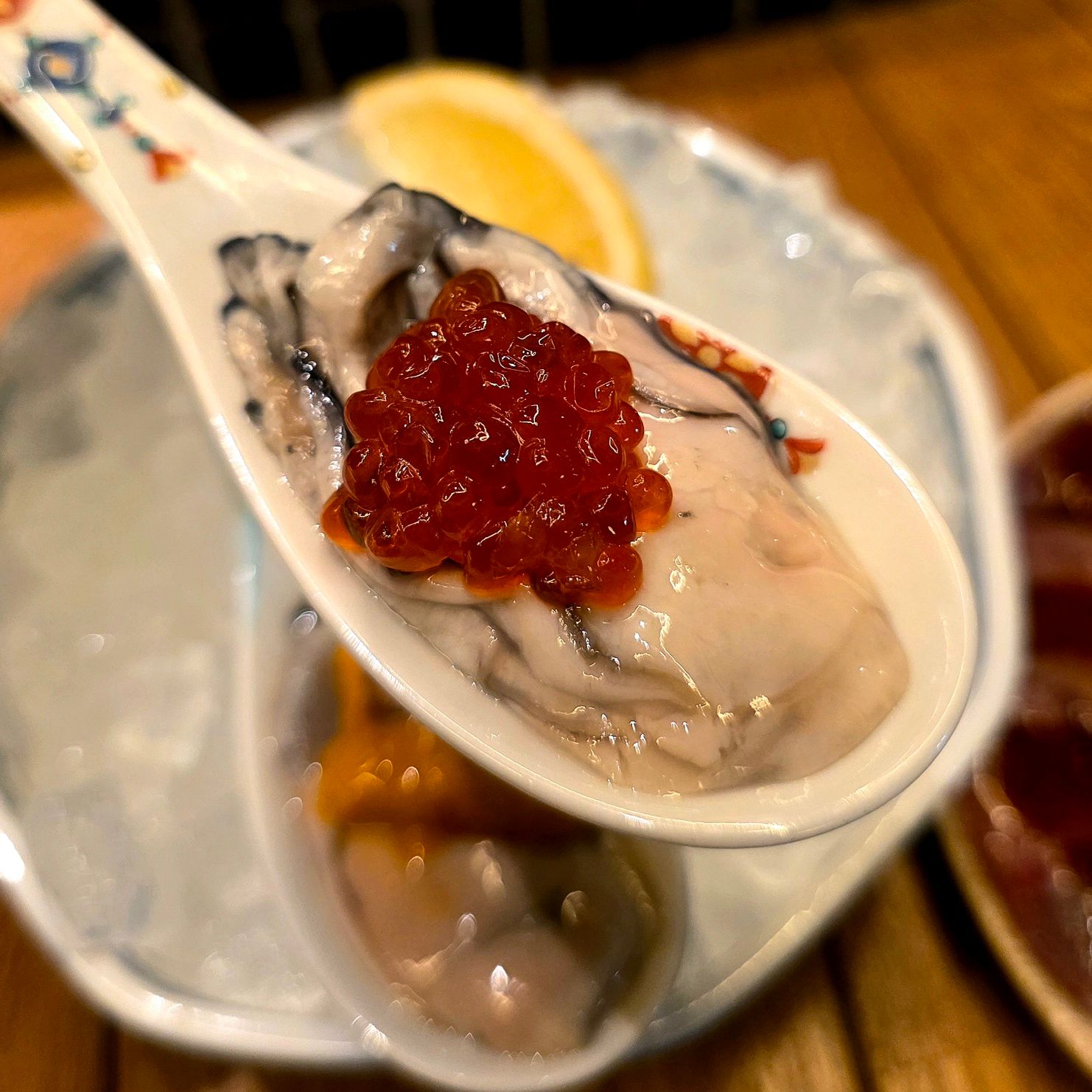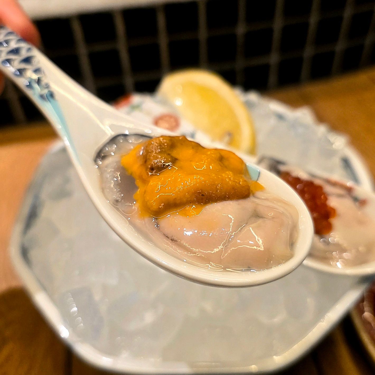 ぷるんとした牡蠣に雲丹やイクラのアクセントが加わって、たまらないです。