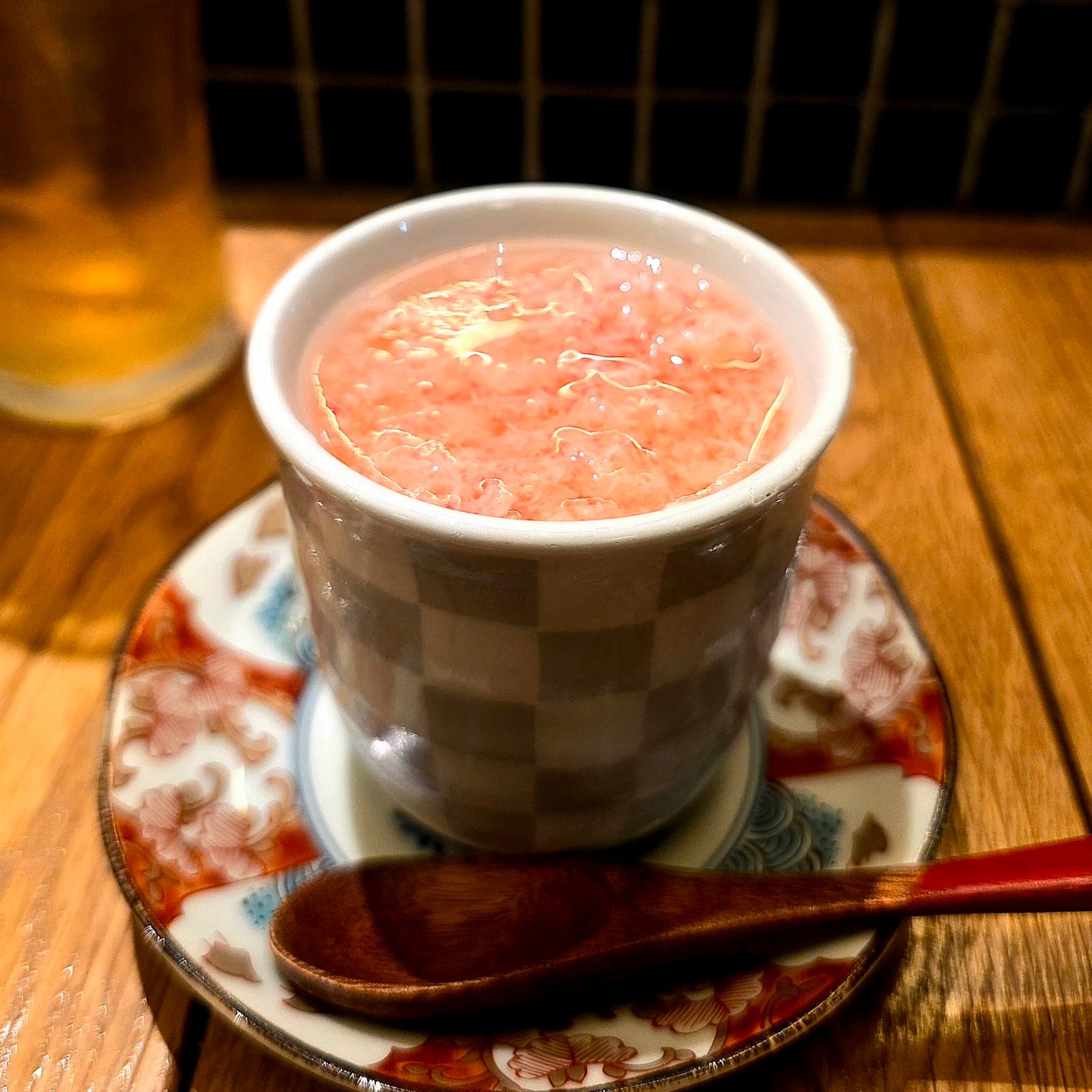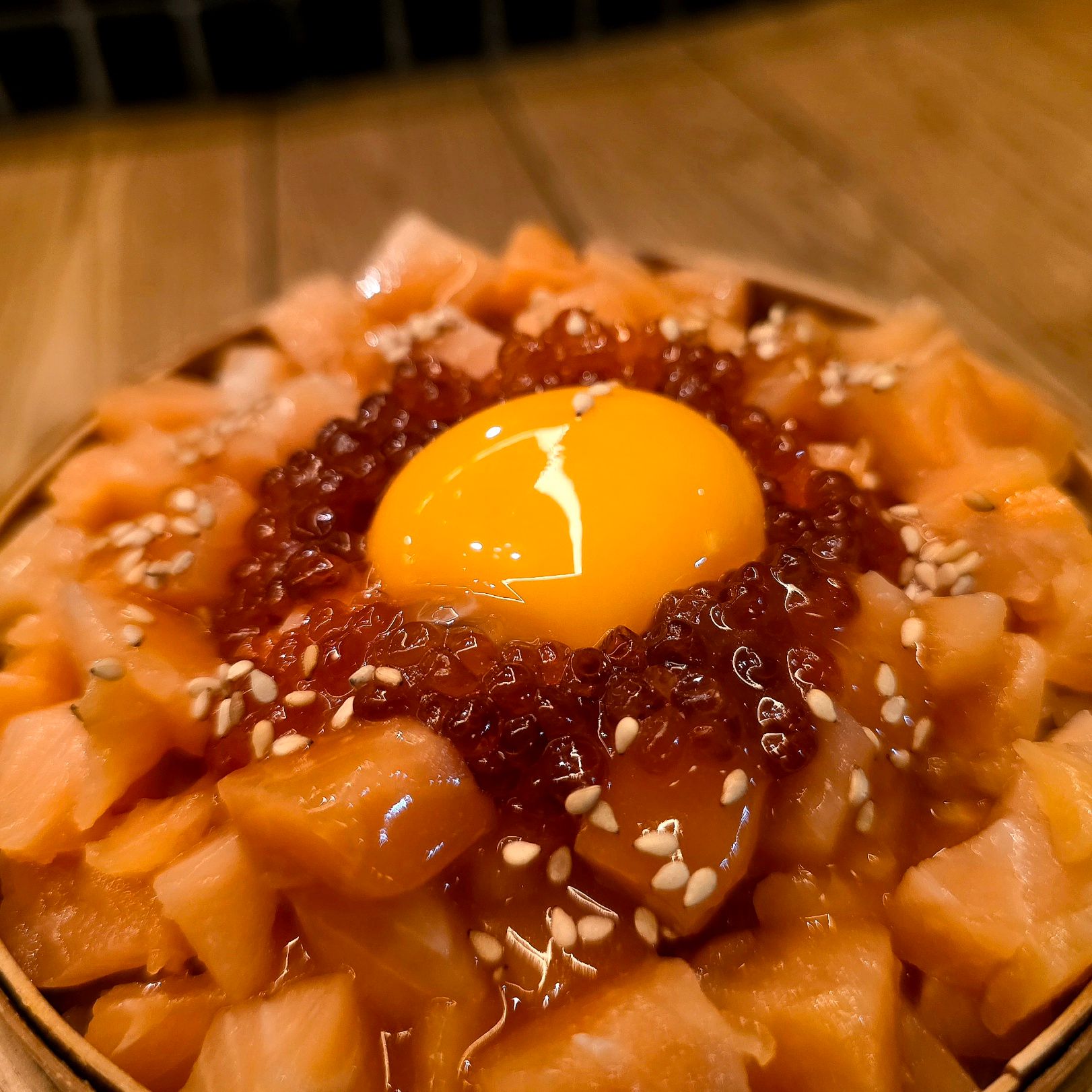 サーモンの脂のりの良さ、いくらの塩気、卵黄のまろやかさ――熱々のご飯とともに頬張ると、口の中で“海と大地の恵み”が混ざり合うようで、締めとしての満足感が圧倒的だった。
