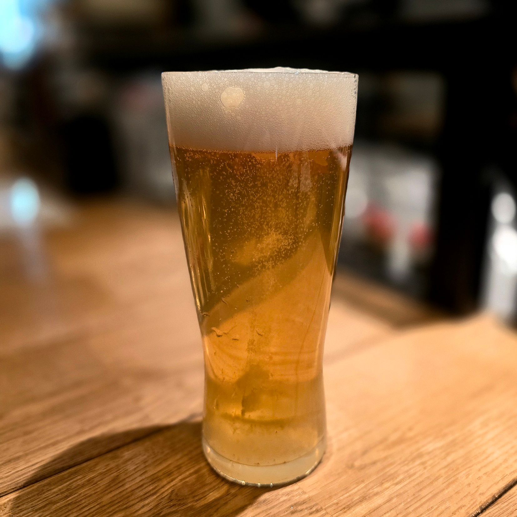 お店オリジナルの「ひまりビール」で乾杯。自家製ライチレモンが入った爽やかなビールです。