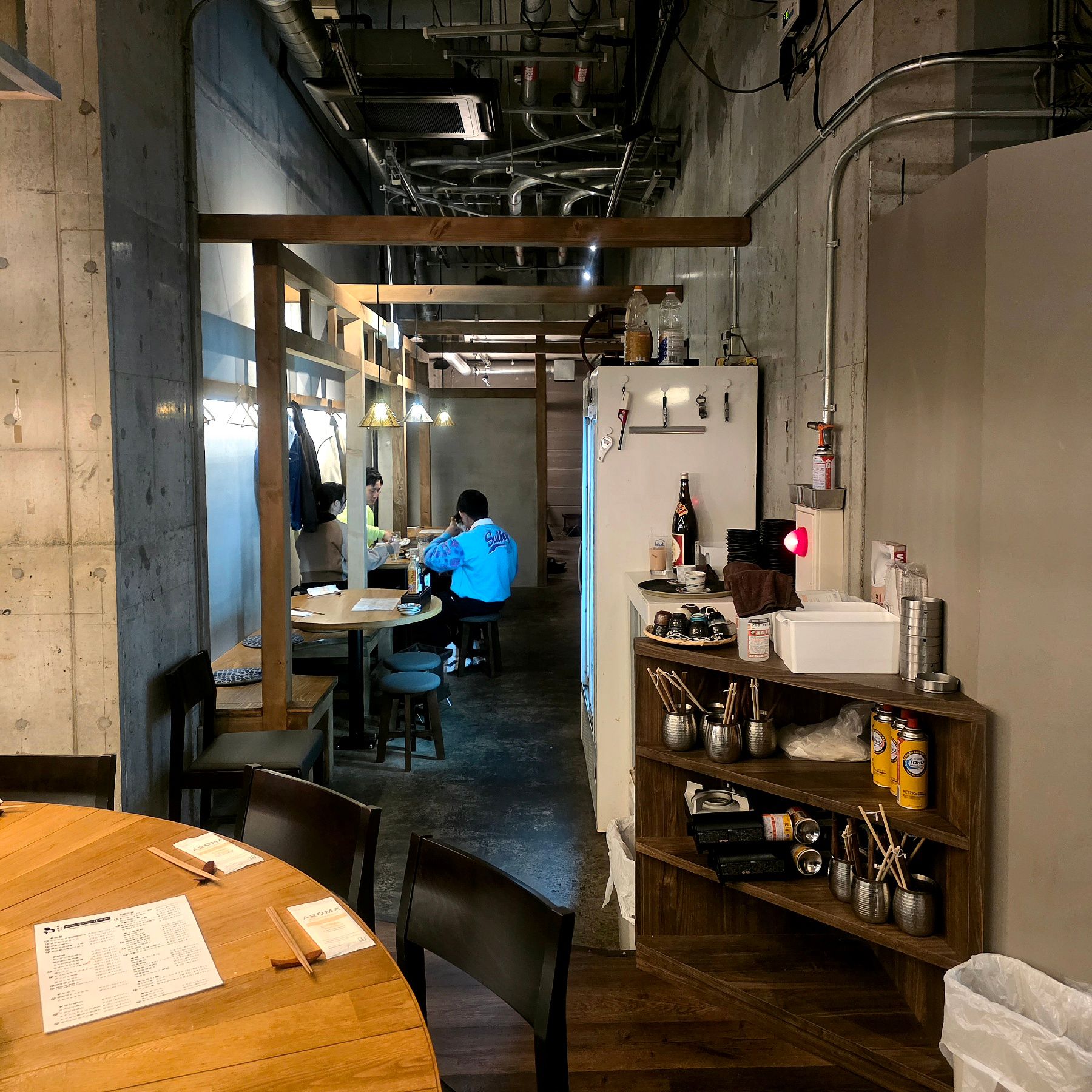 店内は和モダンで、コンクリート打ちっぱなしや木の質感を活かした、ちょっと洗練された雰囲気。