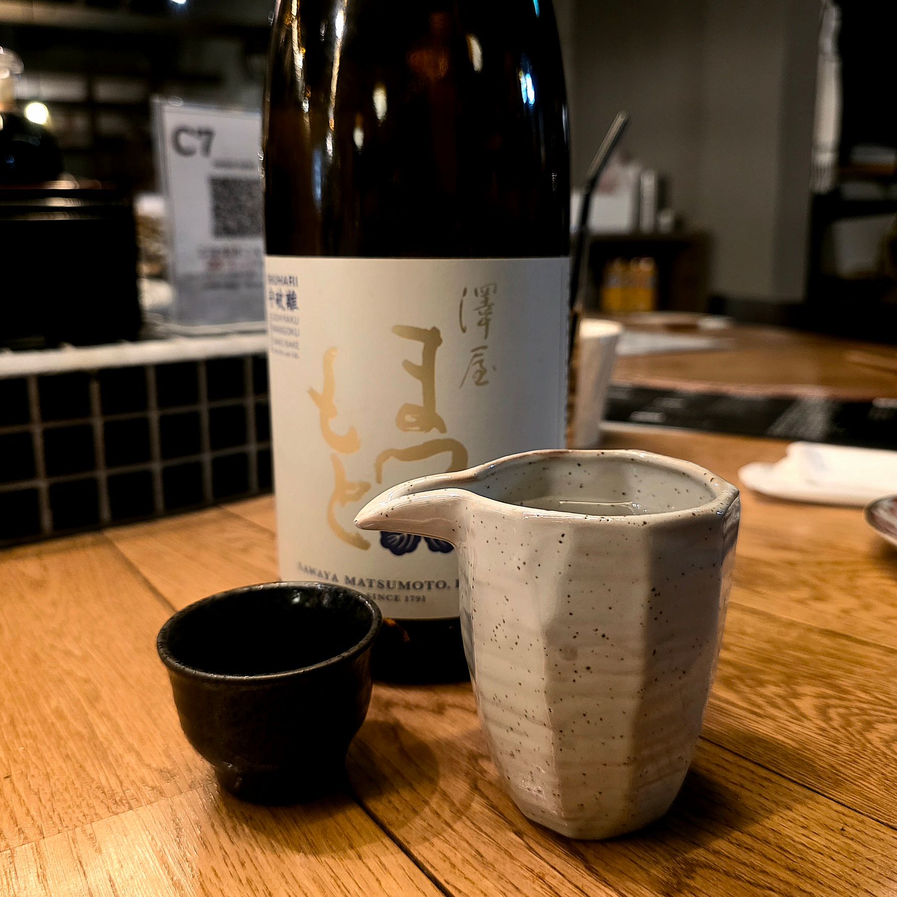 そしてもちろん、この流れで頼んだのが獺祭。濃厚なおつまみたちとの相性が抜群で、日本酒の優しい香りとキレが、料理の余韻をすっきりと締めてくれる。