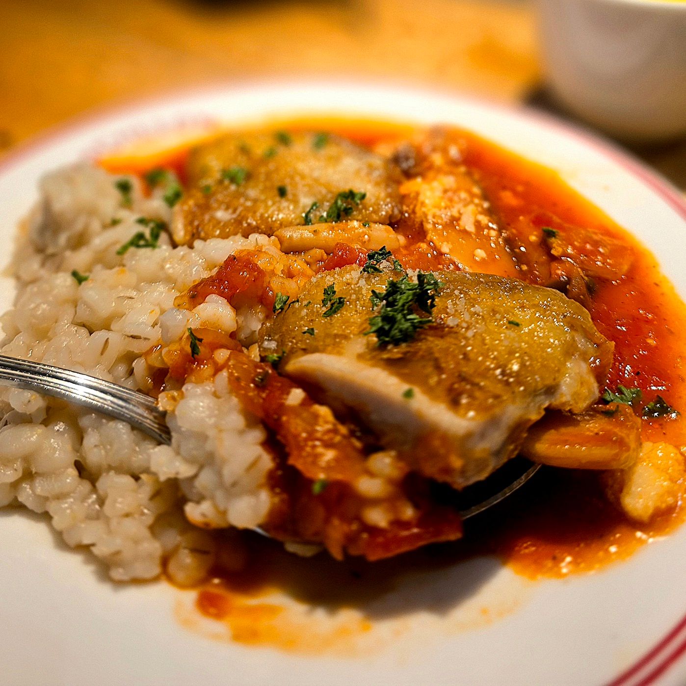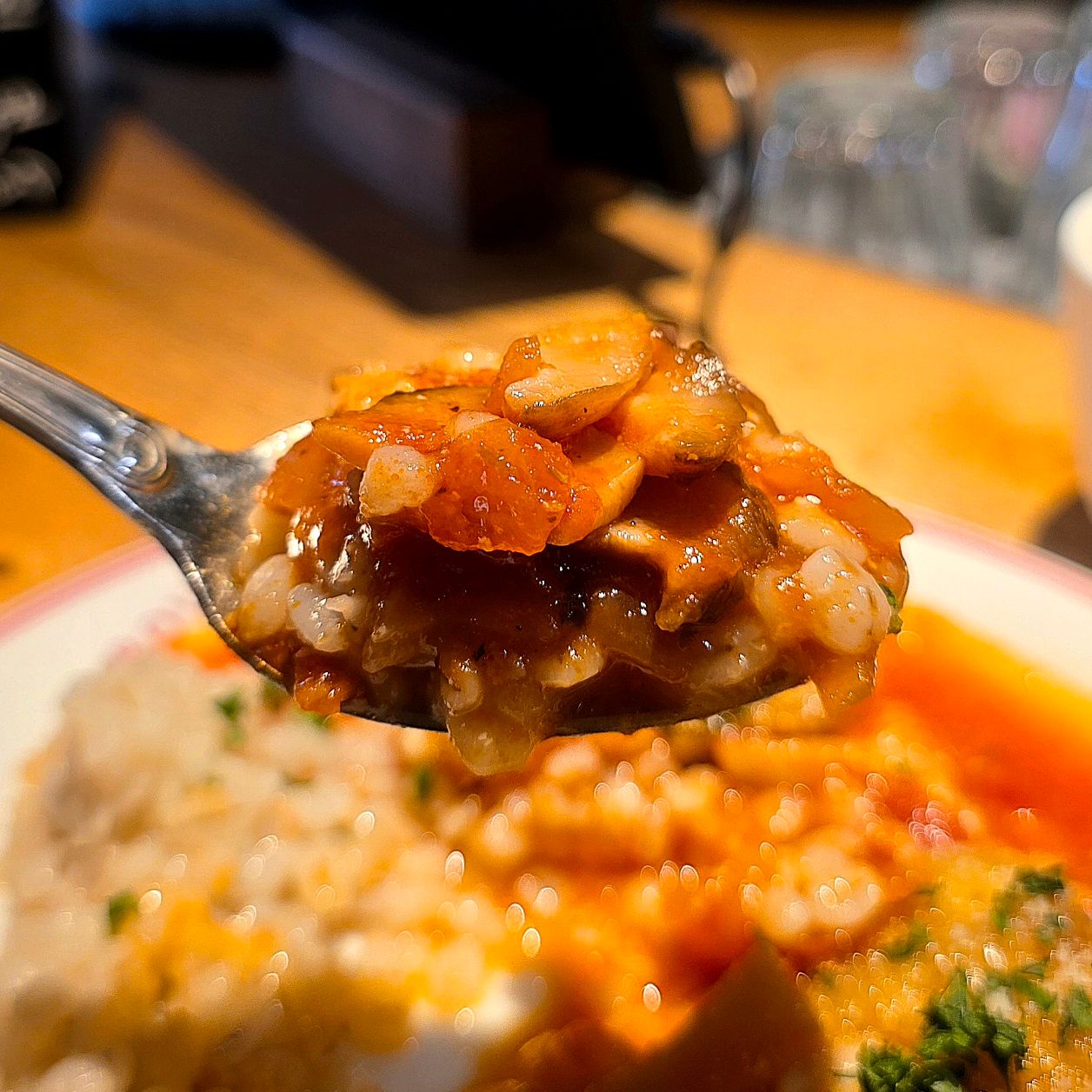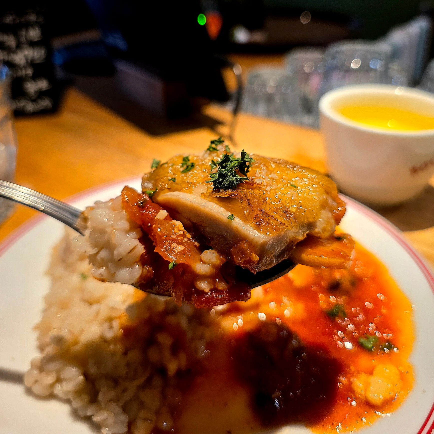 そして、ハーフリゾットは押し麦が入っていて、普通のリゾットよりもぷちぷちとした食感がアクセントになっていて楽しい。