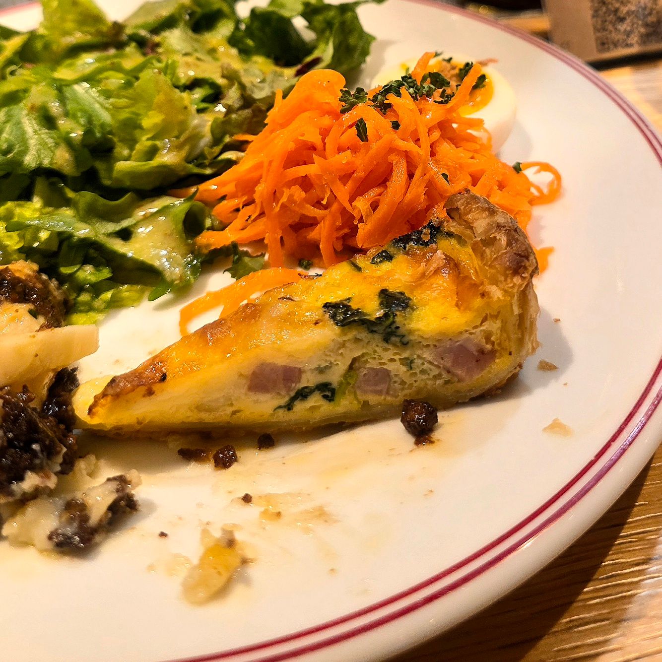 キッシュはふんわりとした生地に、具材の旨味がじんわり染み込んでいて、メインのグラタンと食べ比べても飽きません。