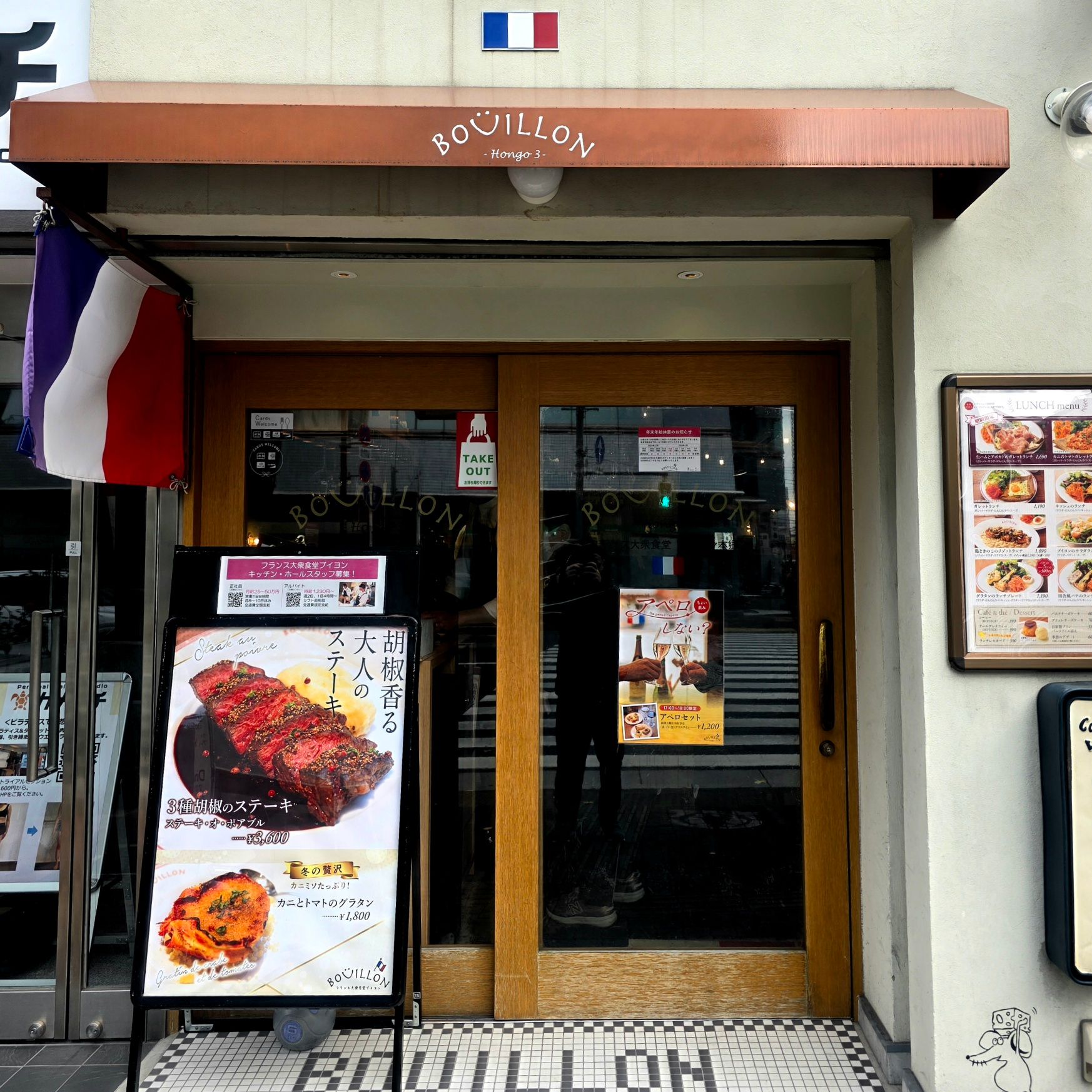 今日は本郷三丁目でランチタイム。駅から歩いてすぐのところにある「フランス大衆食堂ブイヨン本郷3」にやってきました。
