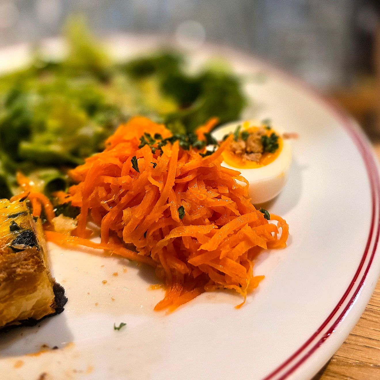 キャロットラペは酸味が程よく、プレート全体をさっぱりとまとめています。