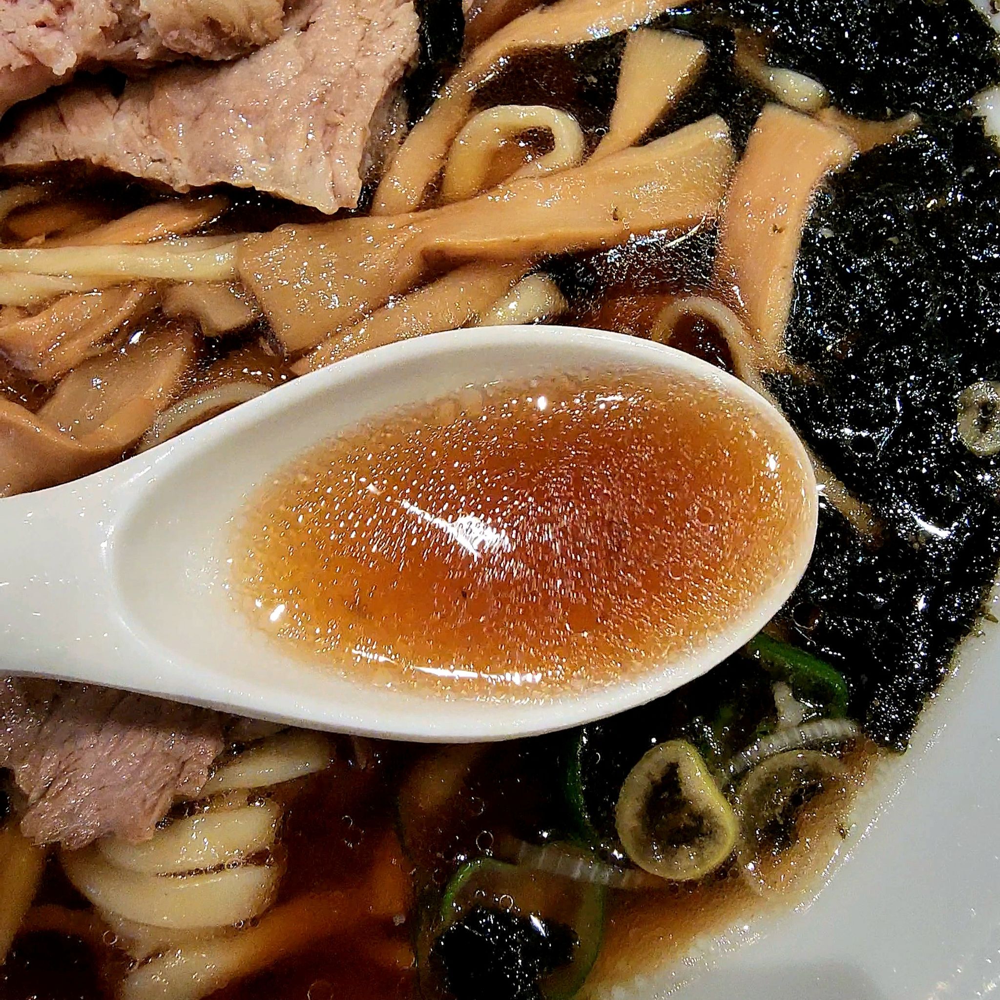 スープは鶏ガラと豚骨をベースにしたあっさりとした醤油味で、シンプルながらも深い味わいがあり、麺との相性も抜群です。この組み合わせは、まさに昔ながらの中華そばといった趣で、どこか懐かしさを感じさせます。