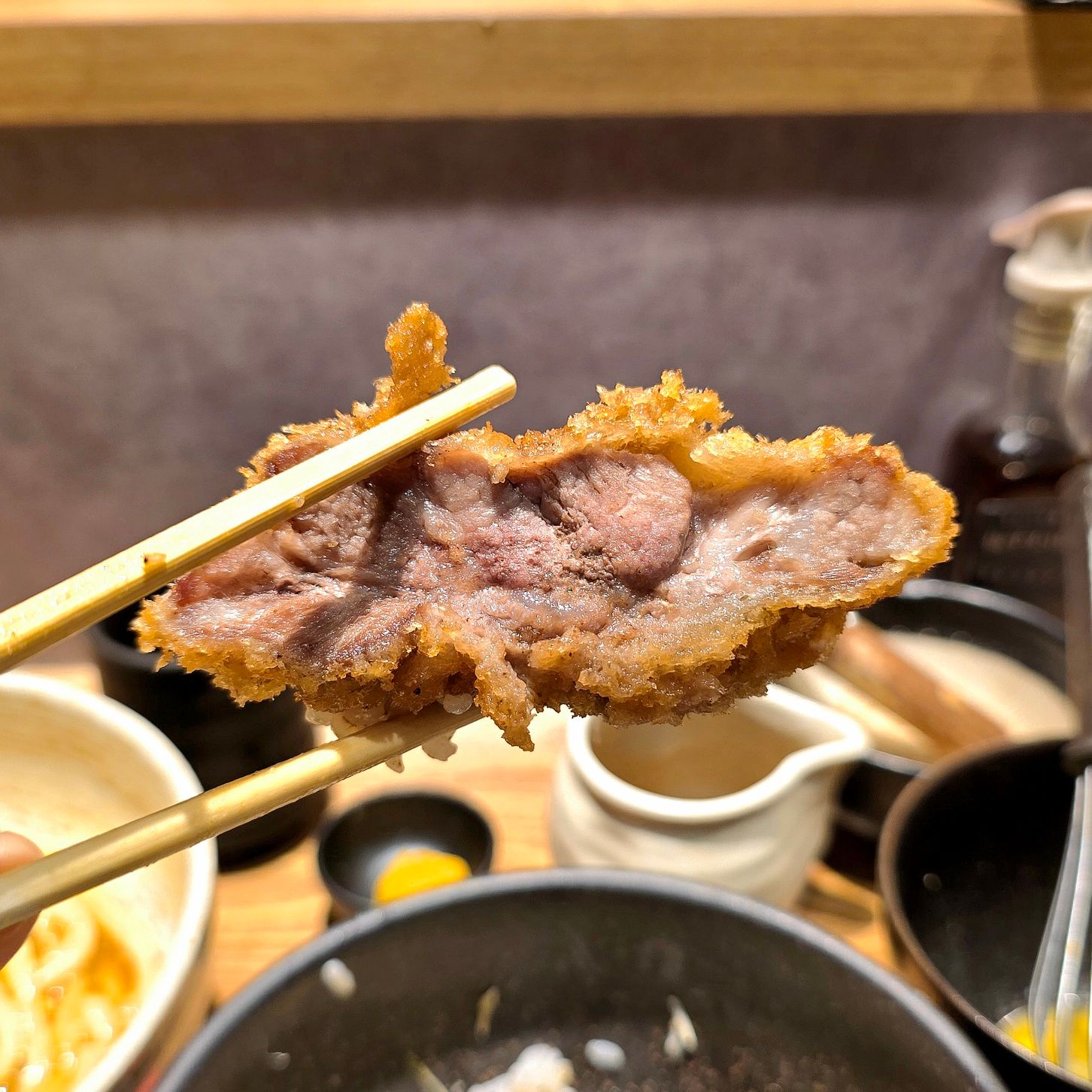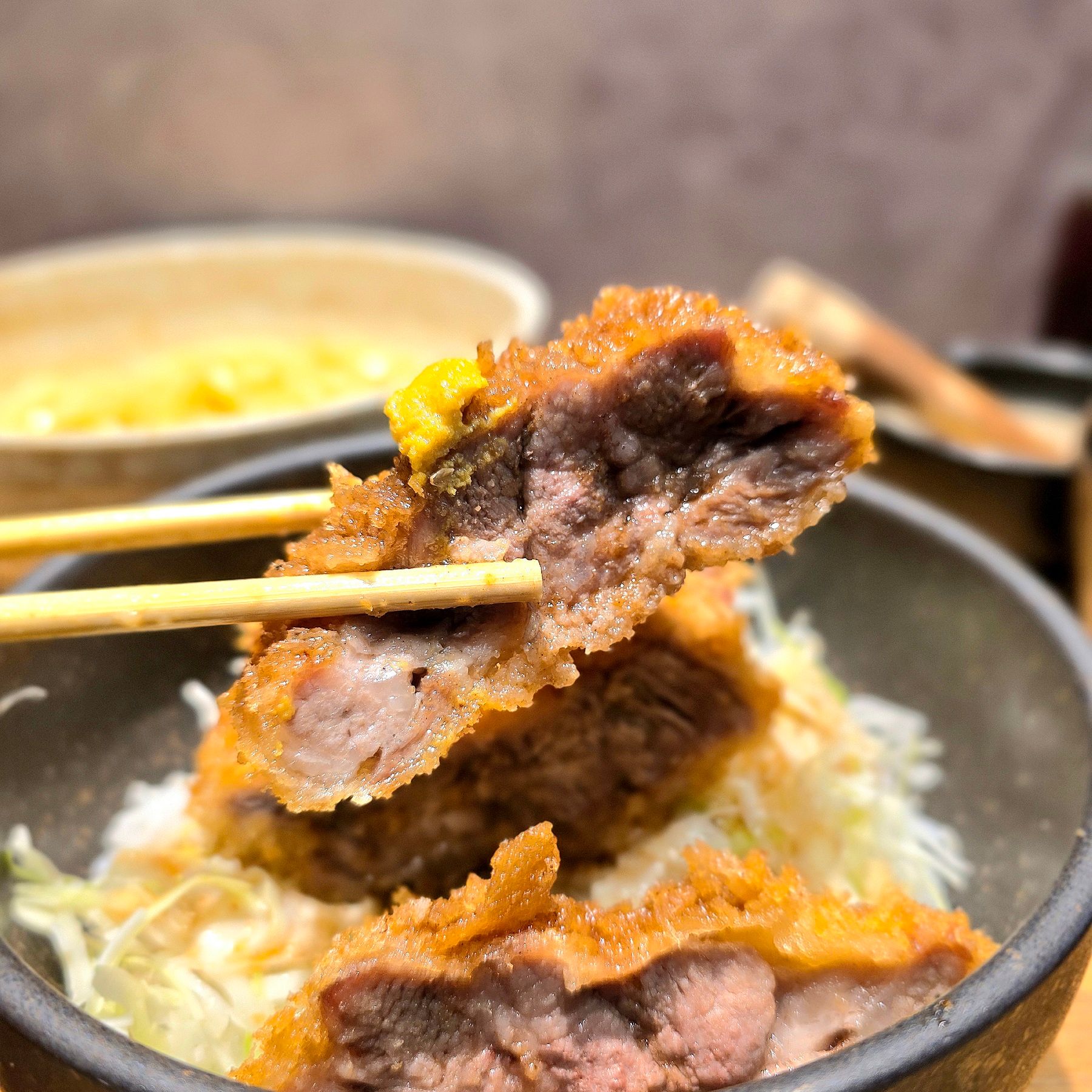 リブロースは程よい厚みで、衣はややしっかりめ。サクッとした食感のあとに、肉の旨みと脂の甘みが口に広がります。