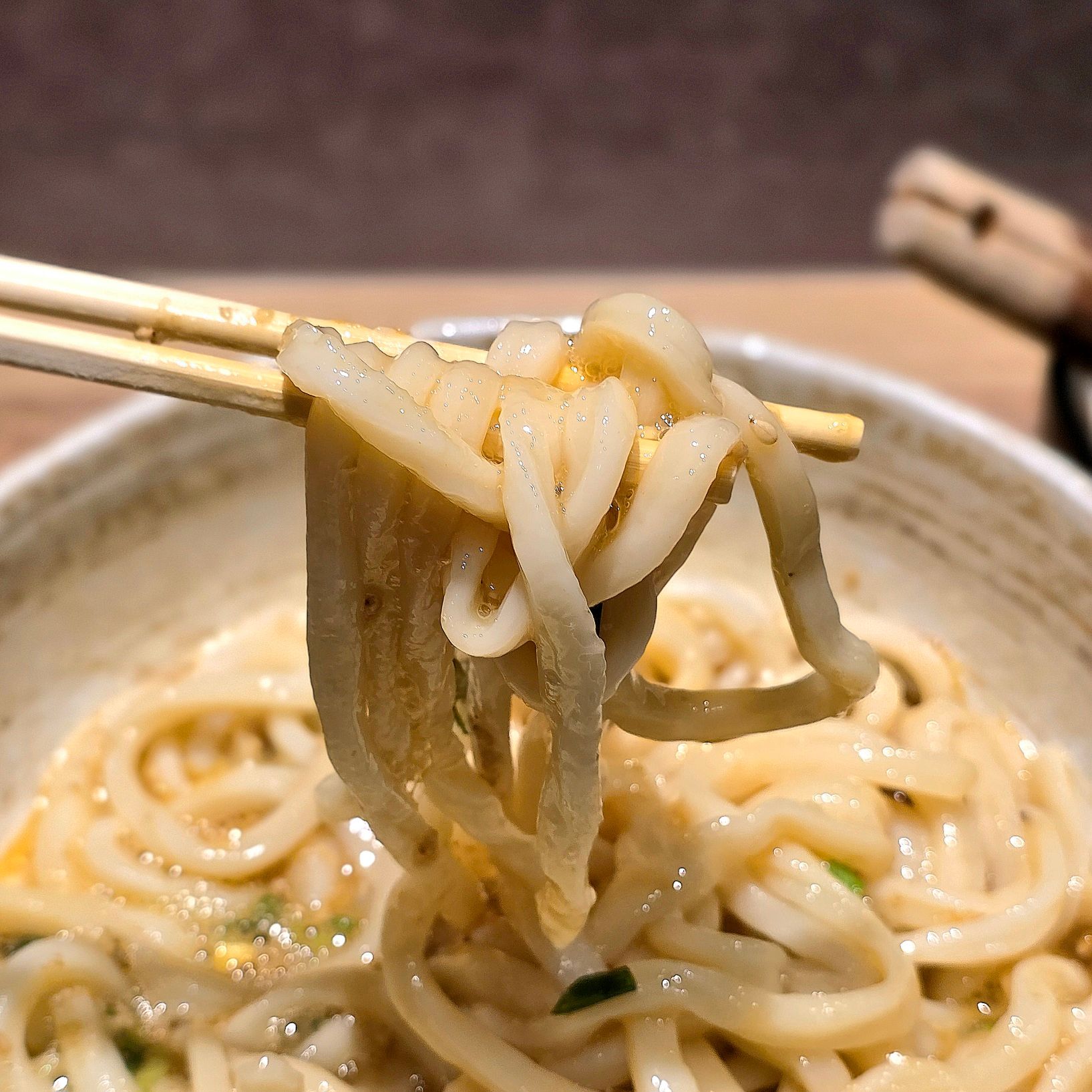 北海道産小麦粉100%で打たれた麺は、とにかくコシが強く、弾力のある噛みごたえ。