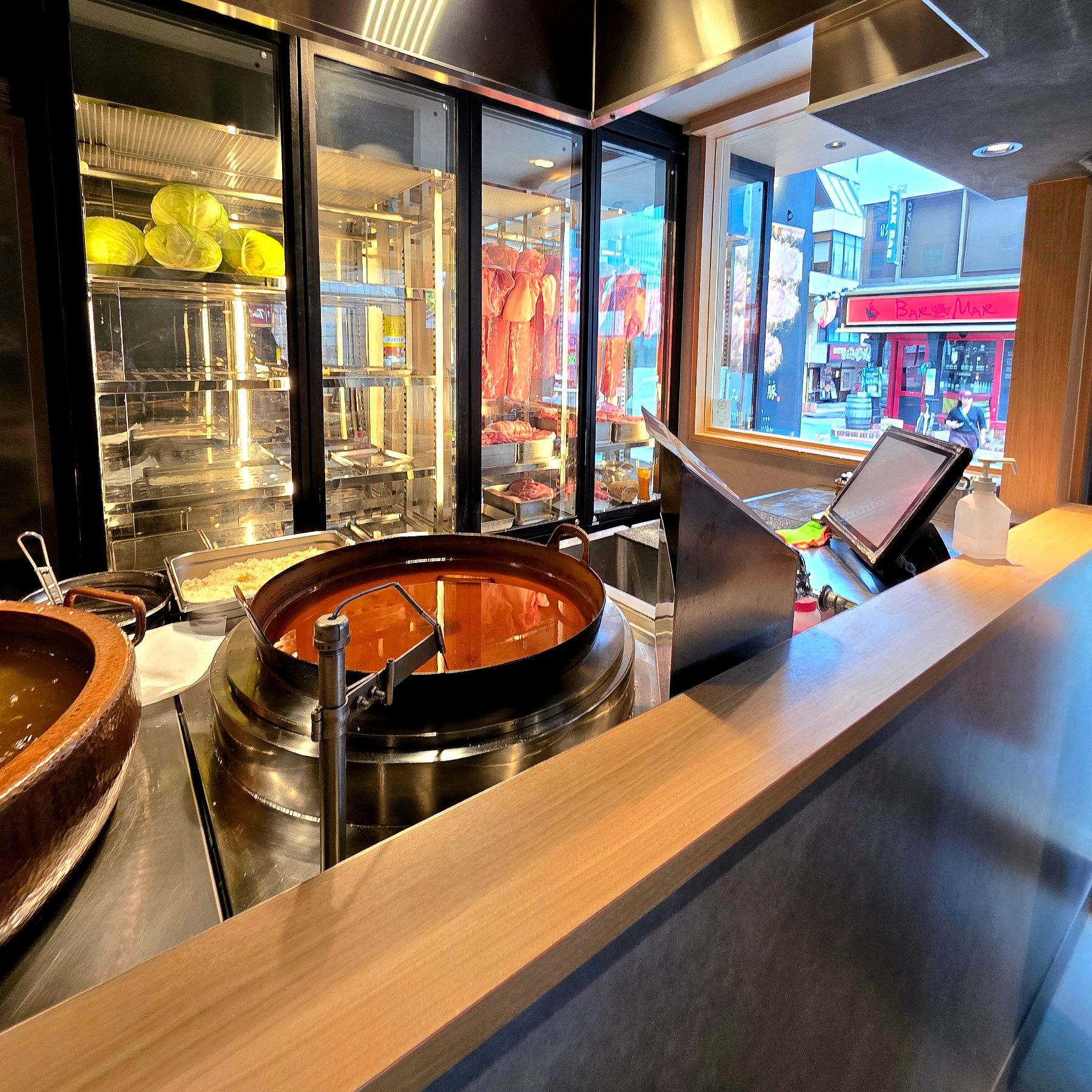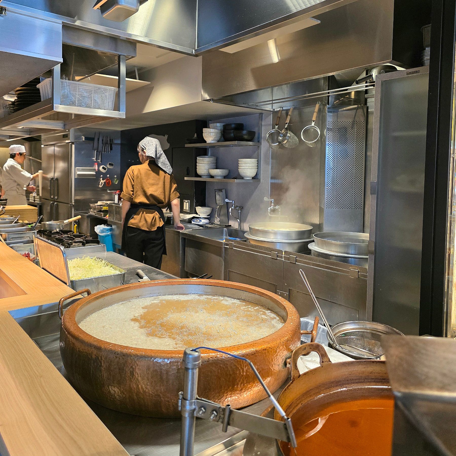 店内は入口でとんかつを調理するのをガッツリ見ることができます。待ち時間もワクワクできる、なかなか上手い演出です。