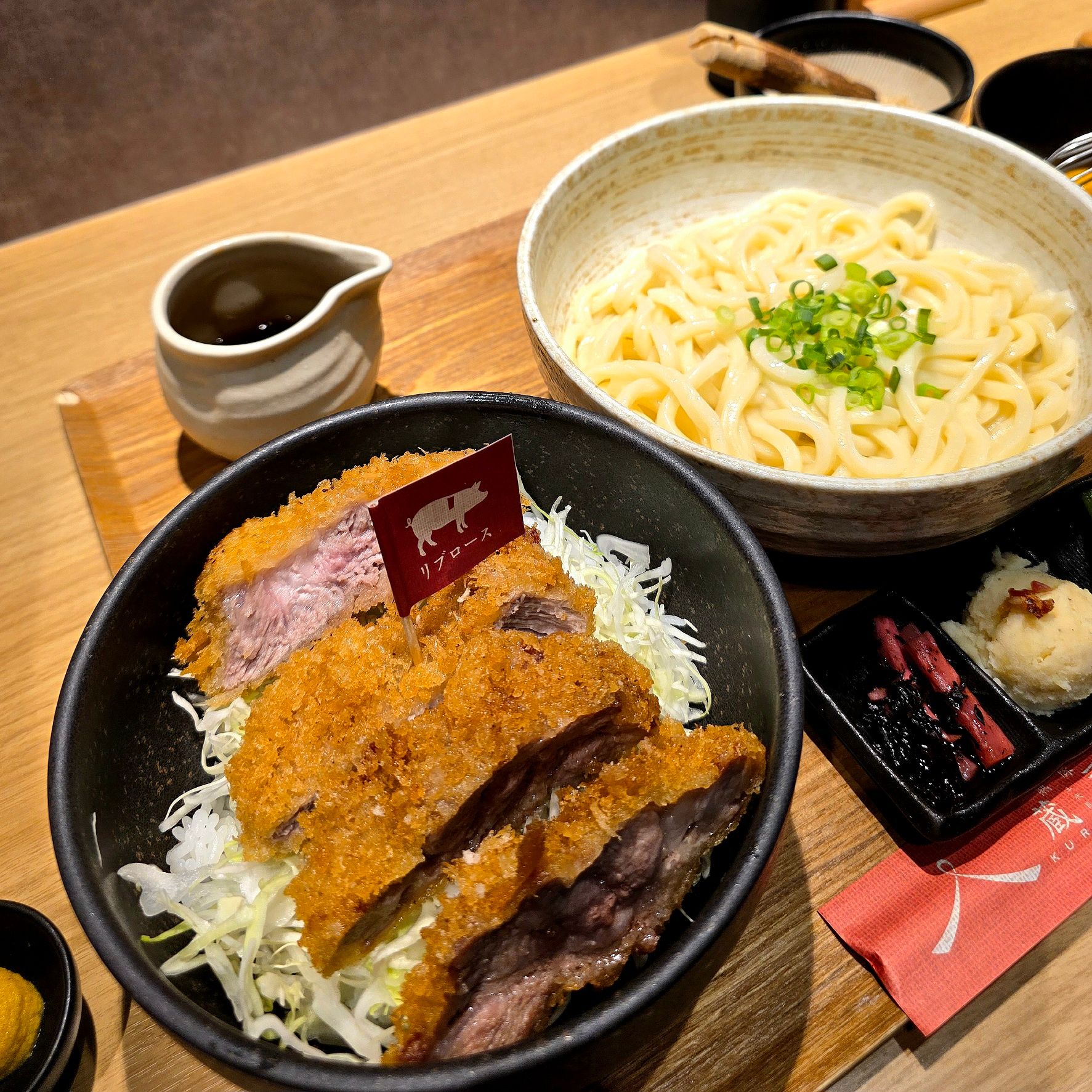 ごはんは中サイズ、とんかつはリブロースを選び、うどんも中を注文。