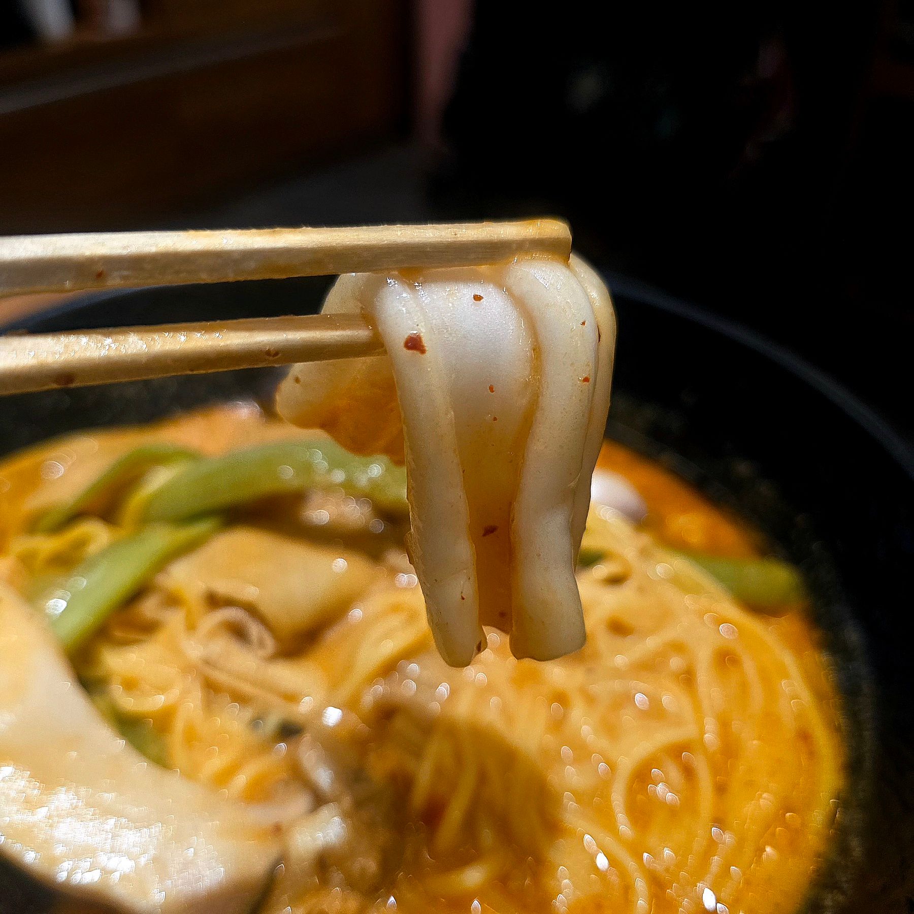 韓国おでんやトッポギは意外にもスープとしっかり馴染んでいて、甘みと辛さのバランスがちょうどいいですね。