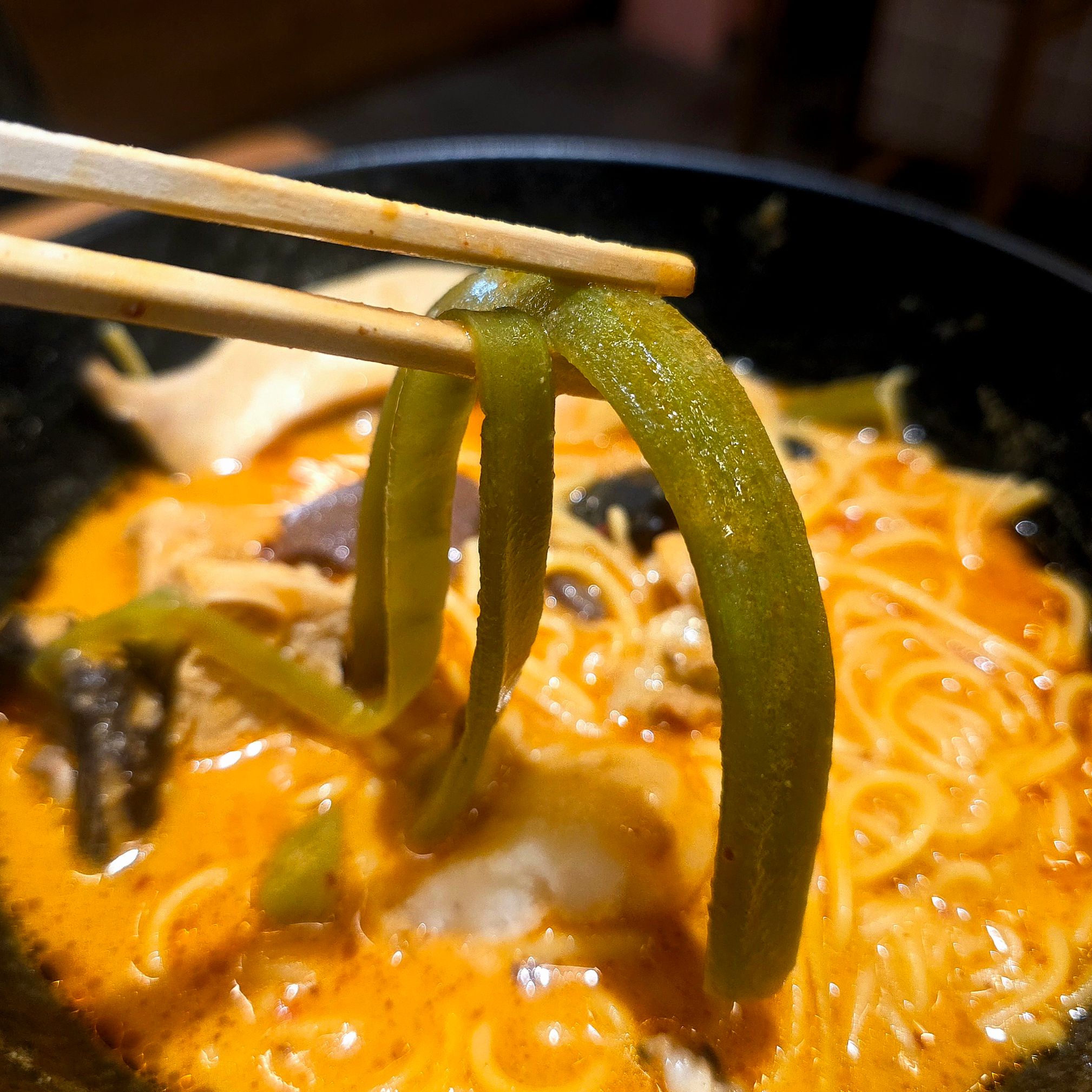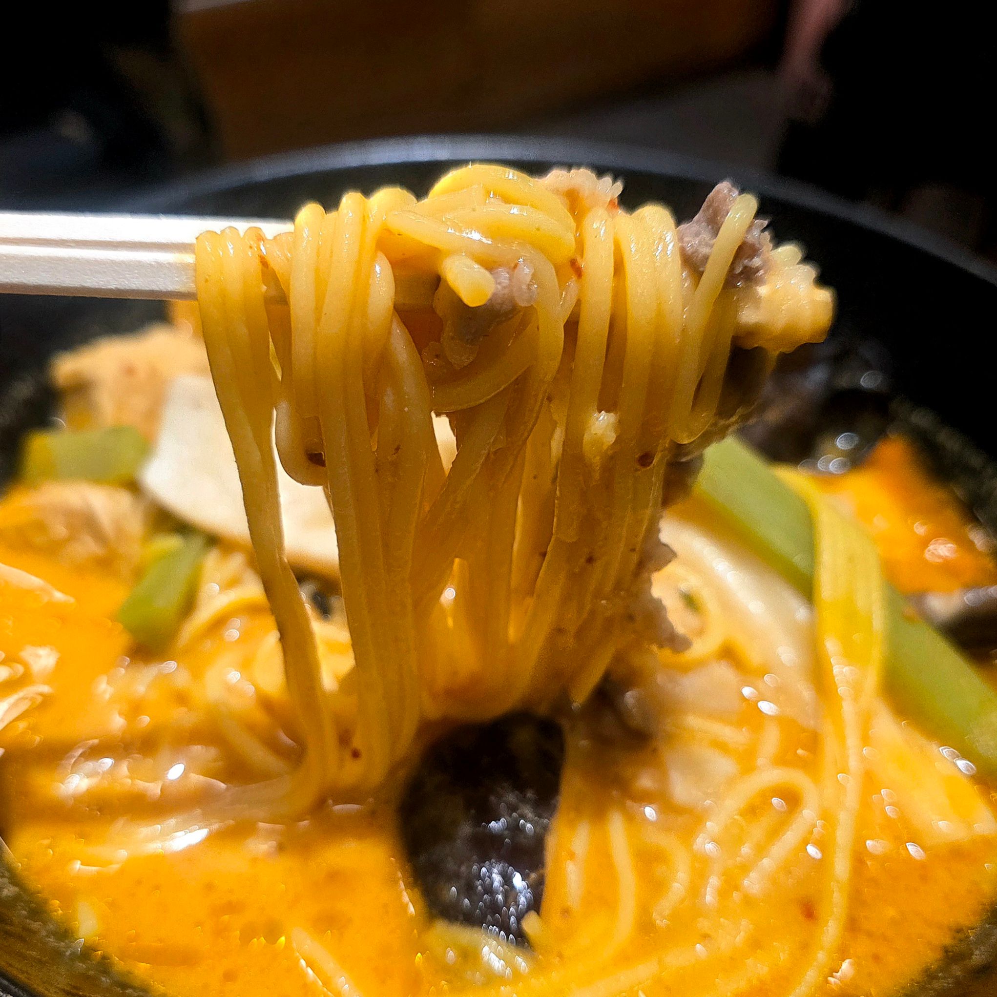 麺はとうもろこし麺をチョイス。小麦麺とは違う軽やかな食感で、スープとの相性も抜群です。