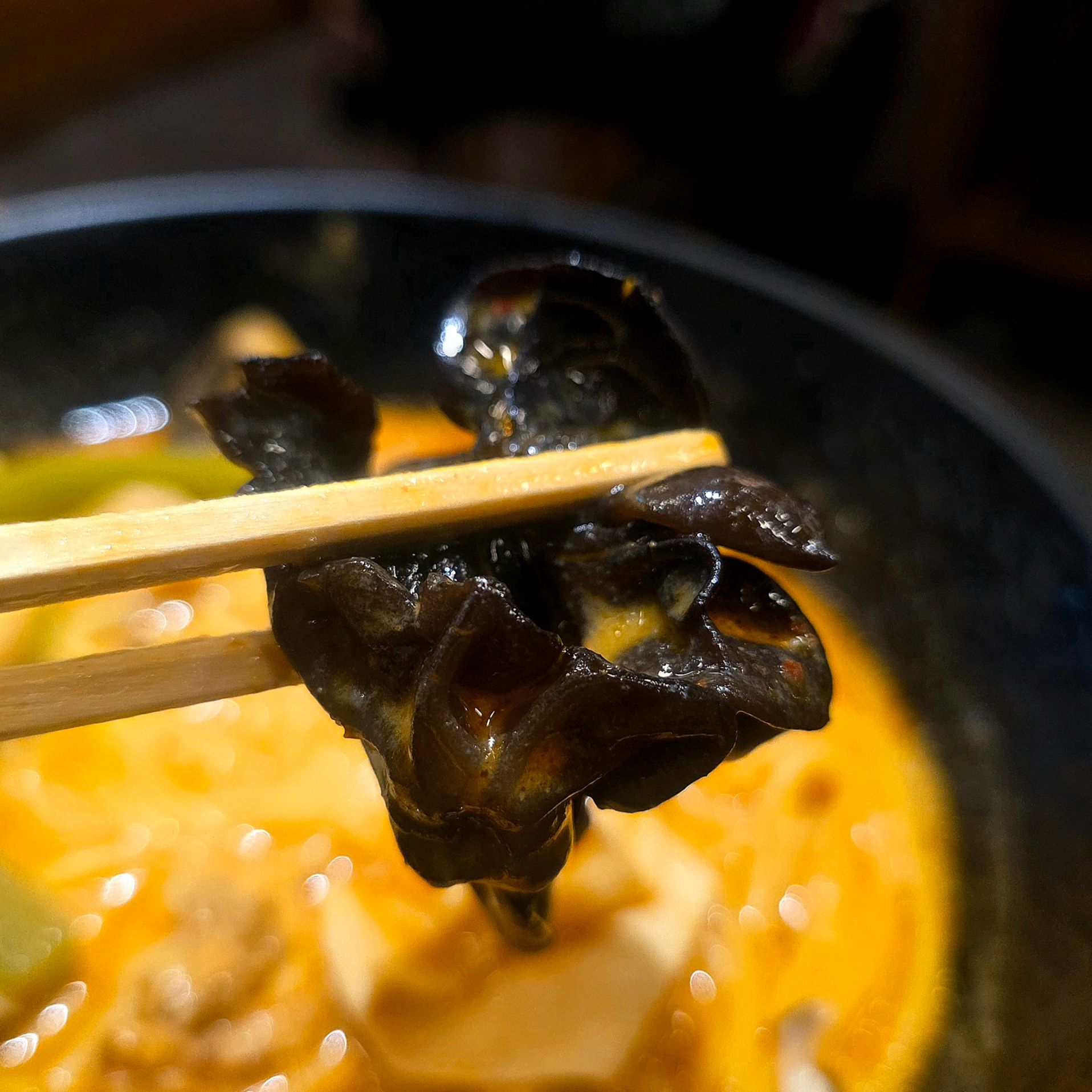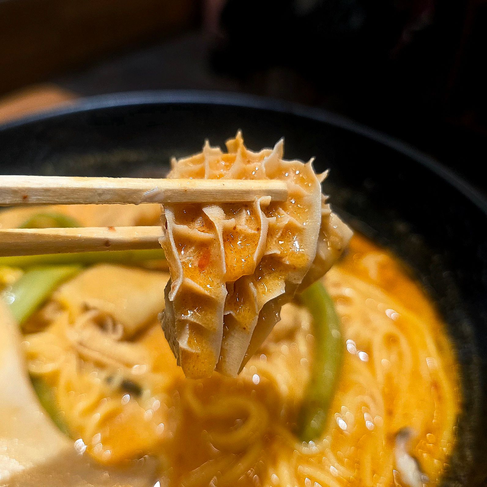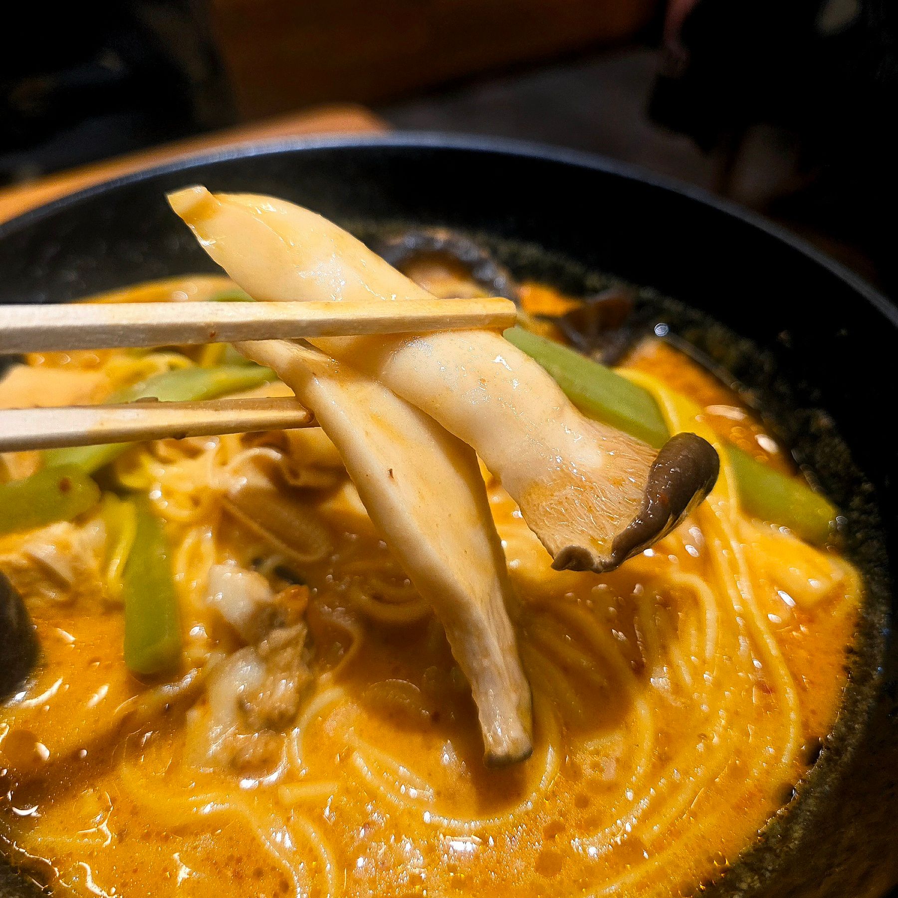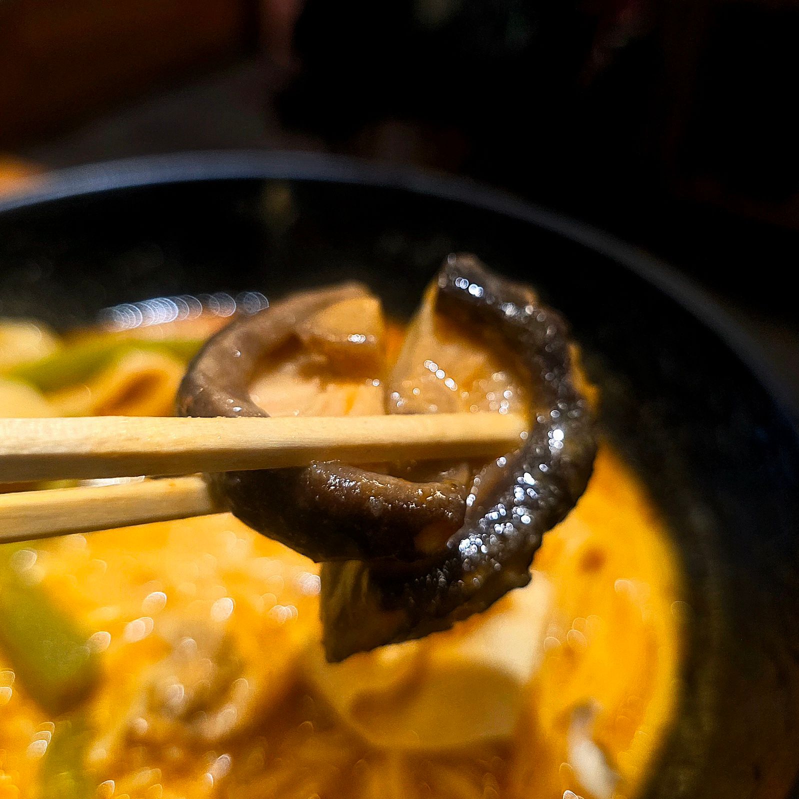 キノコ類はエリンギ、キクラゲ、椎茸をチョイス。どれもスープを吸って旨味爆発。