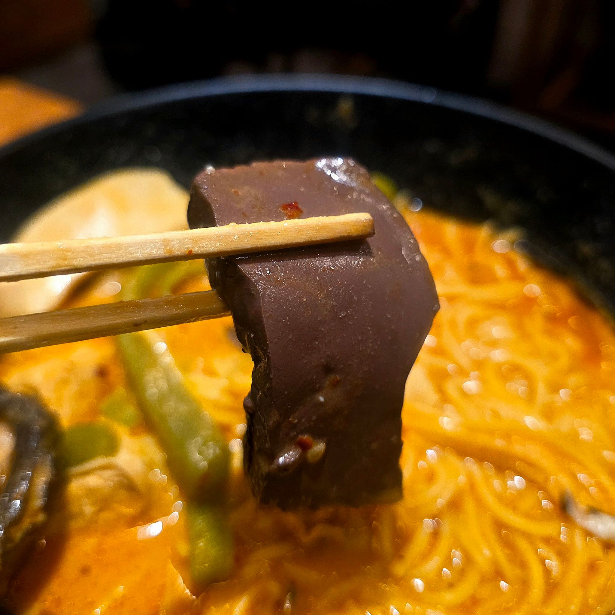 血豆腐はクセはあるけど、麻辣スープと合わさるとコクが増す存在。