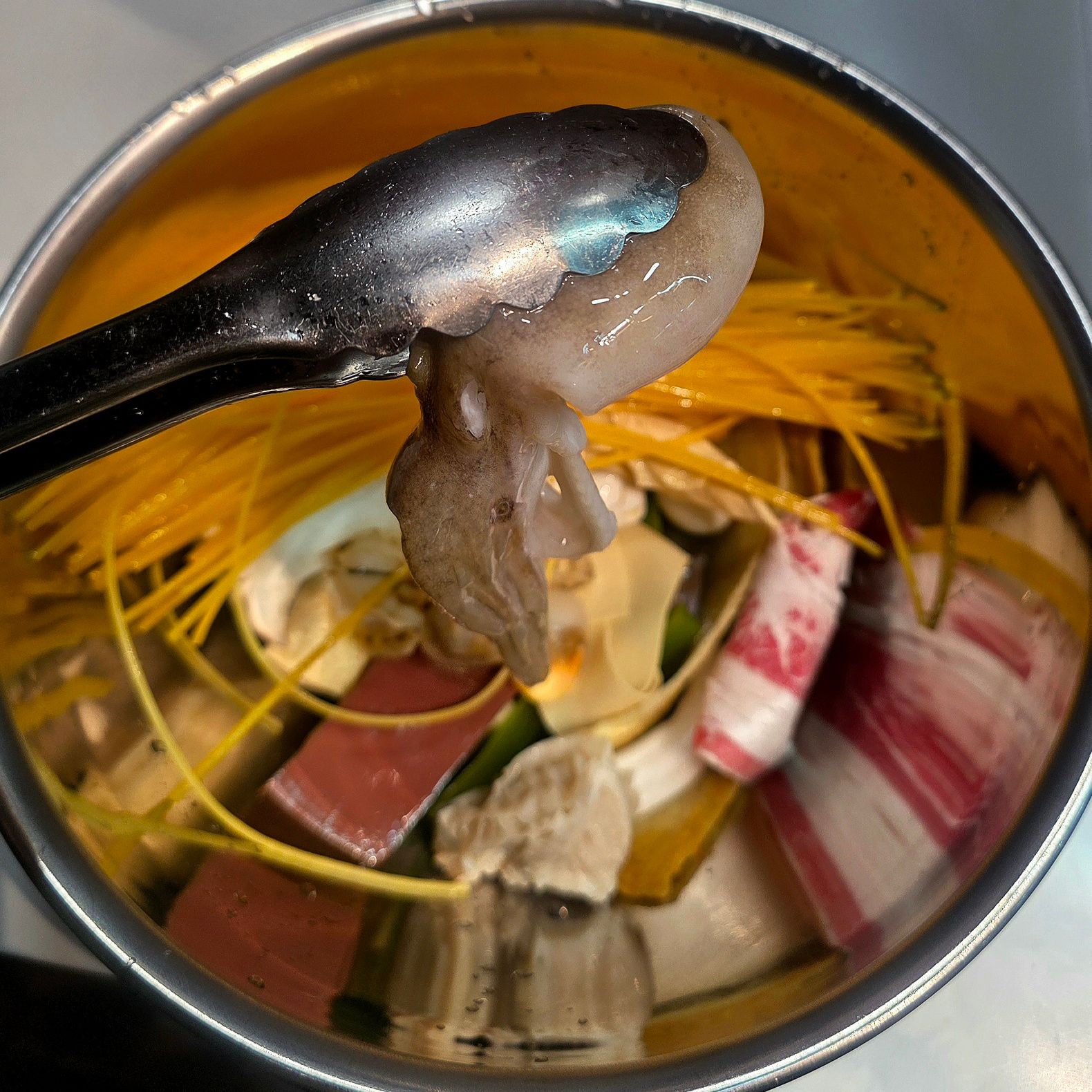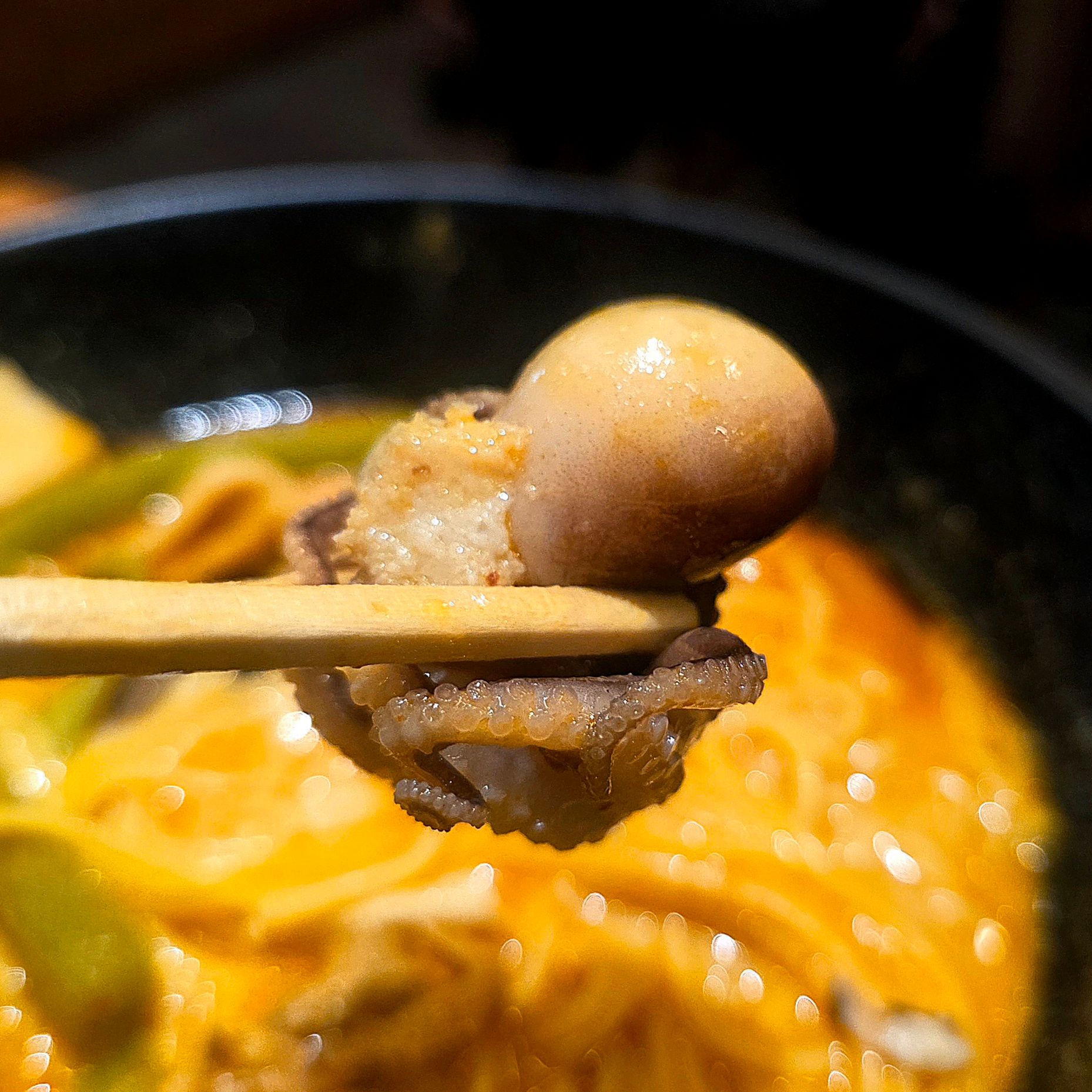 イイダコはぷりっとした食感で、ピリ辛スープとの相性も抜群。