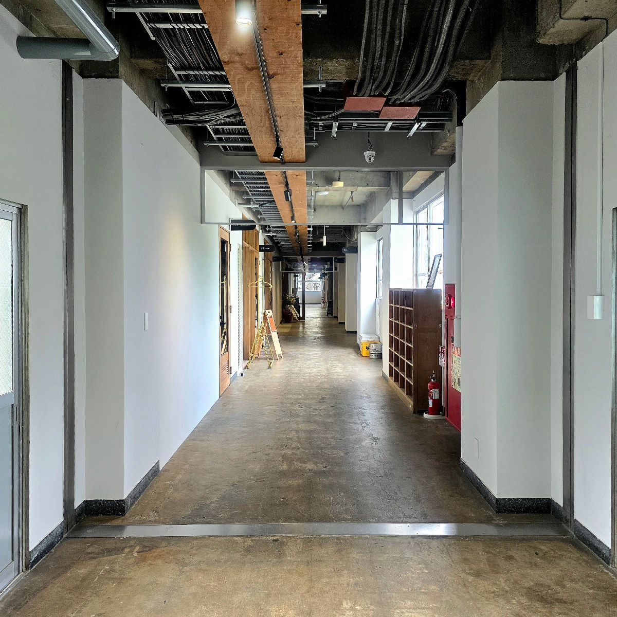 食後は、せっかくなので施設内を少し散策。校舎の廊下、体育館の大きな天井、教室だったであろうスペースに差し込む光。