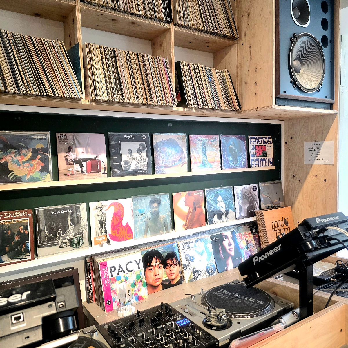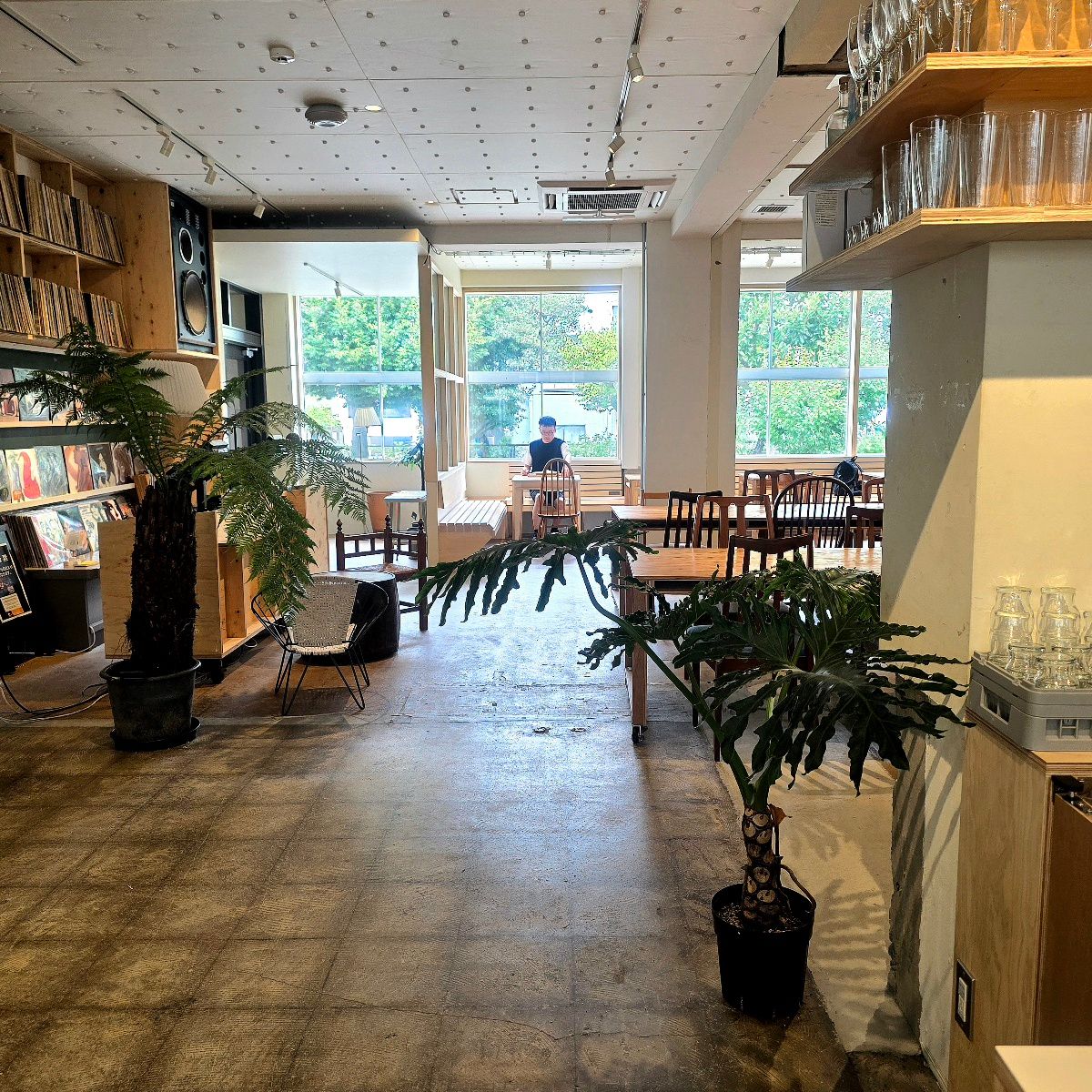 店内に入ると、壁一面にレコードが並んでいたり、グリーンが豊富に配置されていたりして、お洒落な雰囲気。