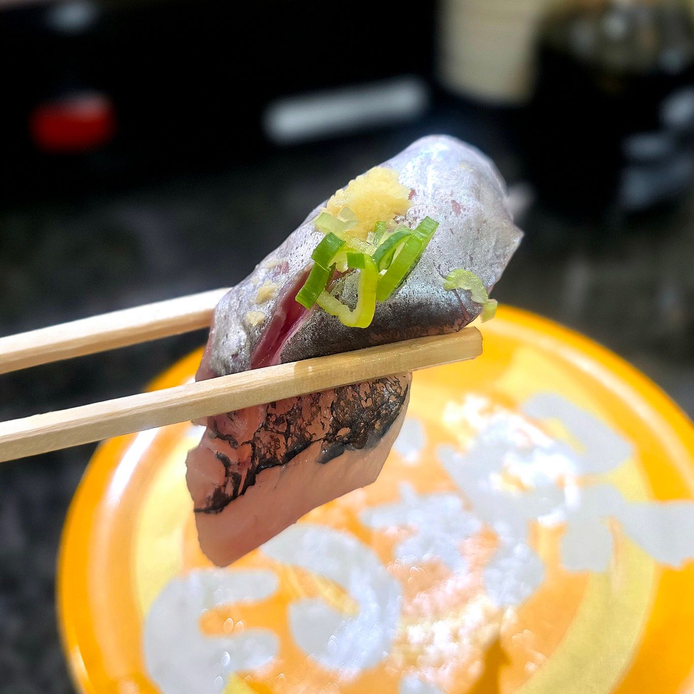 「アジ(360円)」は青魚らしい爽やかな脂が心地よく、酢飯との相性も抜群。噛むたびに香りが立って、これも間違いなくおすすめ。