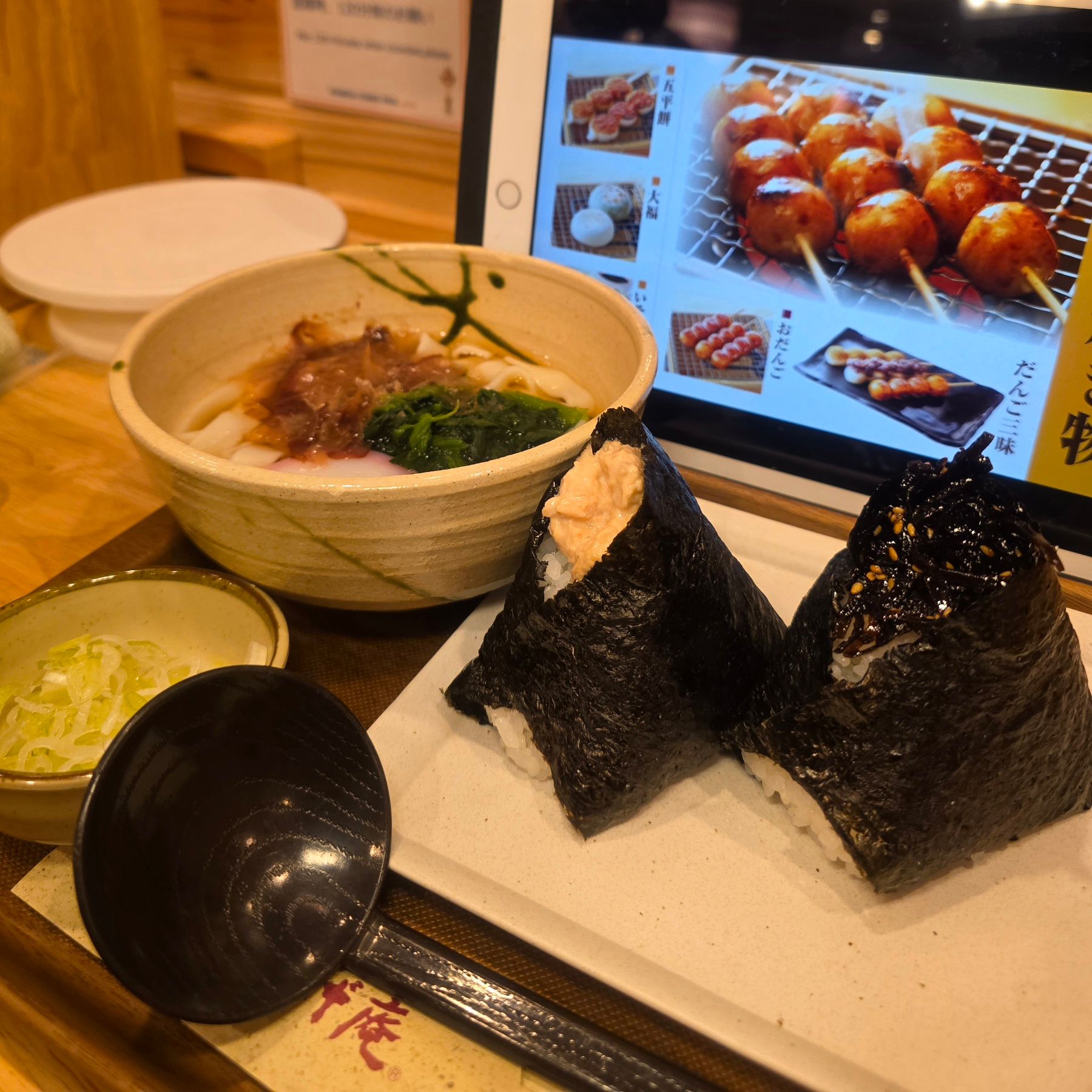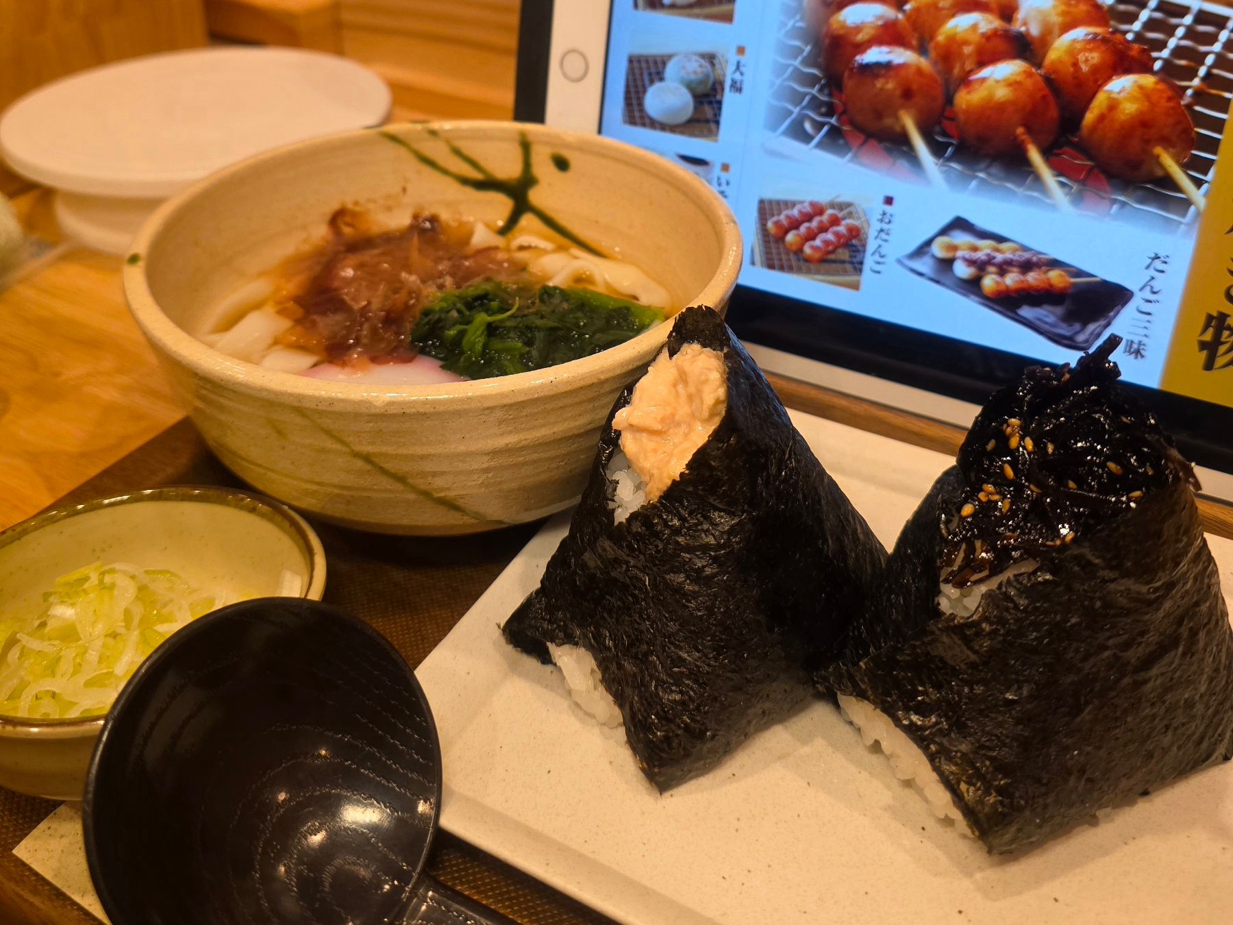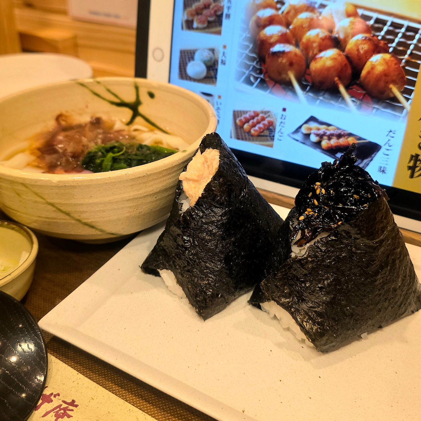 今回選んだのは「日替わりおむすび2個ときしめんハーフサイズセット(¥980)」。