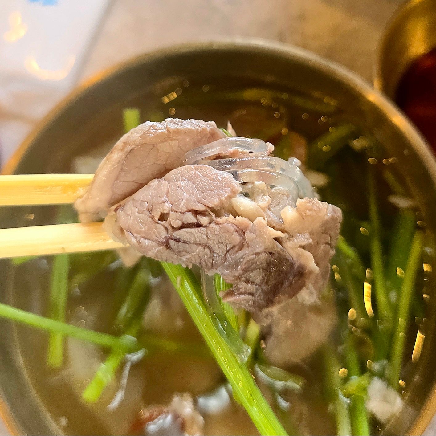 このスユク、肉本来の旨味とスープの深みがすごくナチュラルで、韓国オモニの家庭料理そのもの。