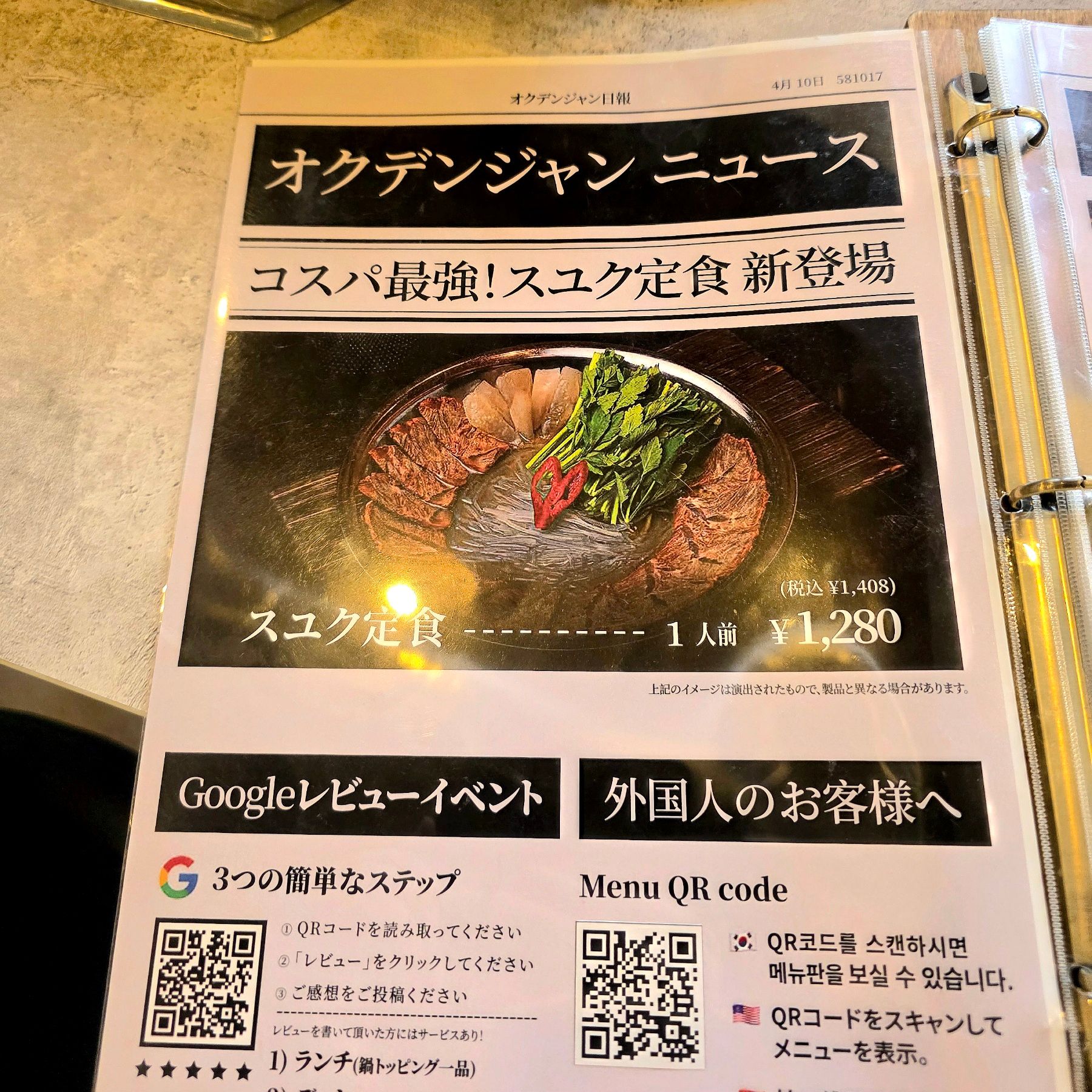 まずは「スユク定食(約1,408円)」をお願いしました。
