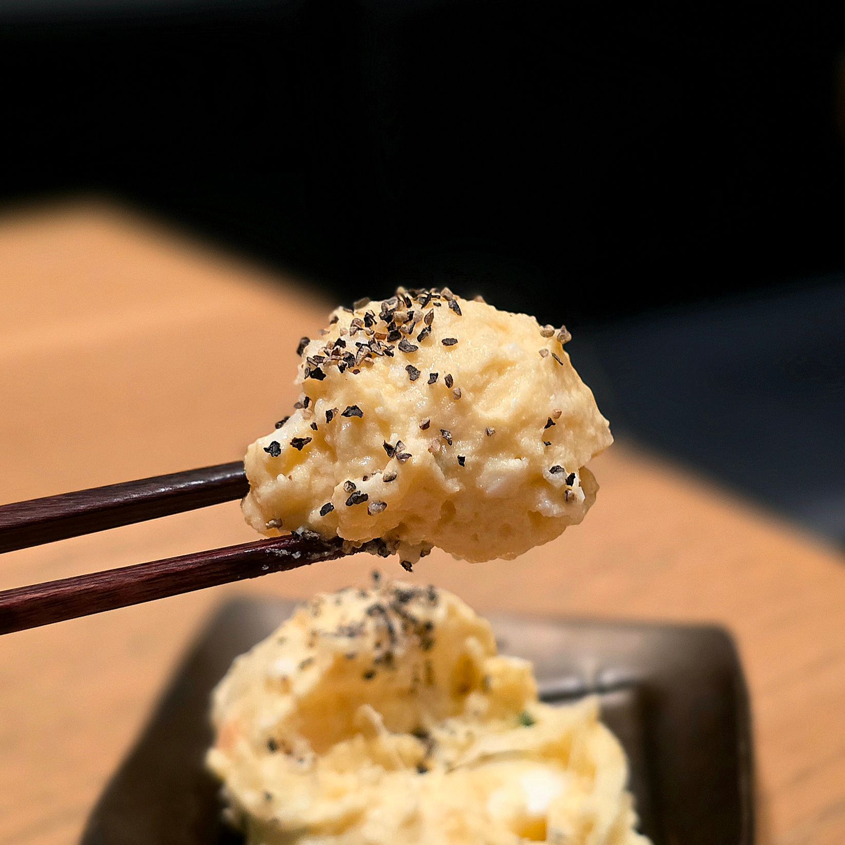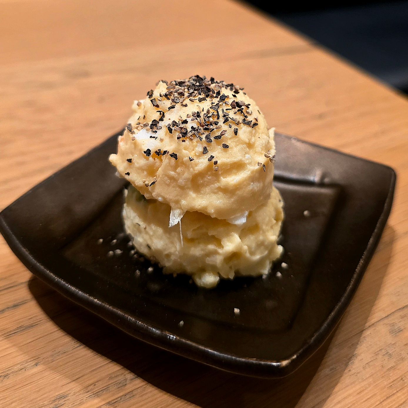 まずは「大人のポテトサラダ(700円)」。じゃがいもは潰しきらないタイプで、舌の上で時々ぷちっと粒がほどけます。