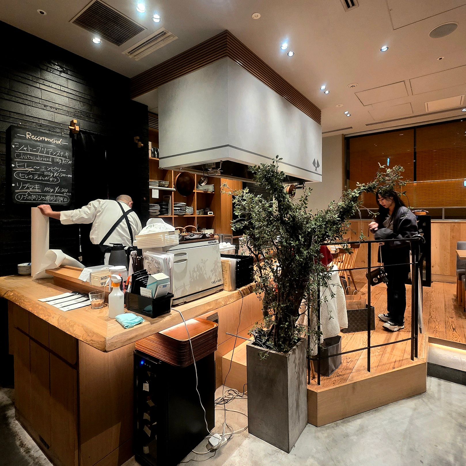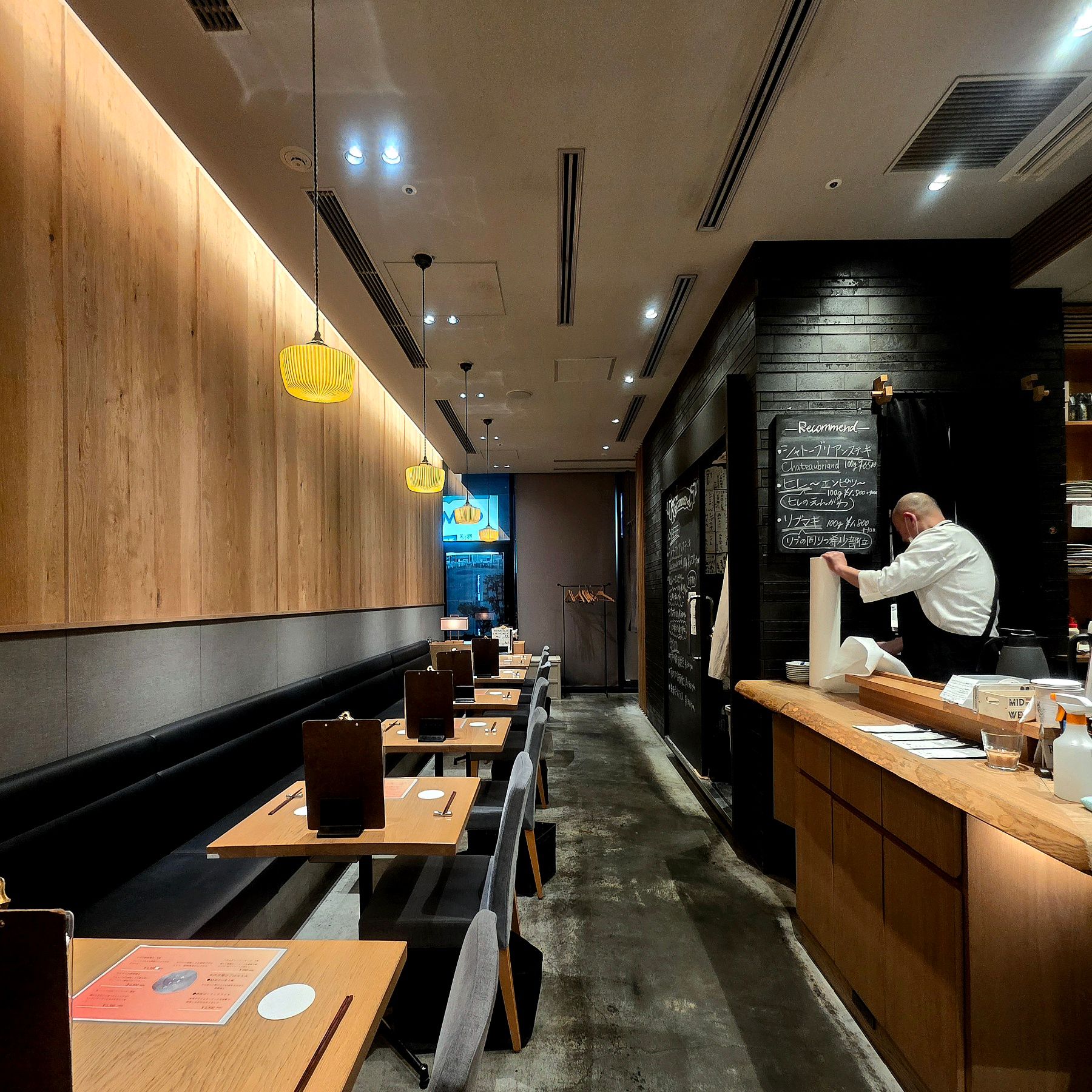 グレーと木の中間みたいな落ち着いた空気が漂ってて、鉄板の上で「じゅわああ…」と音が鳴るだけで、アルコール分泌スイッチが自然にONになります。
