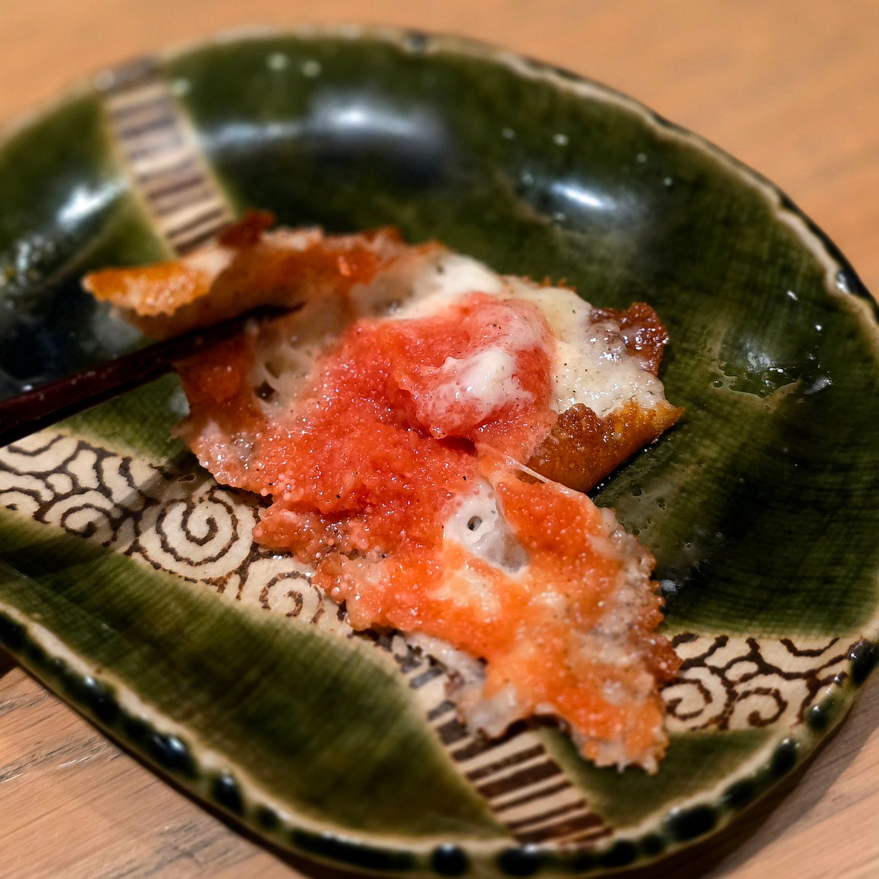 外側のチーズはカリッとした鎧なのに、中はとろりと濃厚。
