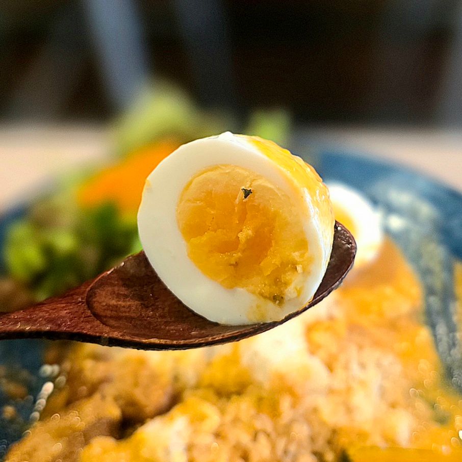 塩こうじ漬け卵もほどよい塩気と旨味があって、カレーの濃厚な味とのバランスをとるいい箸休め。