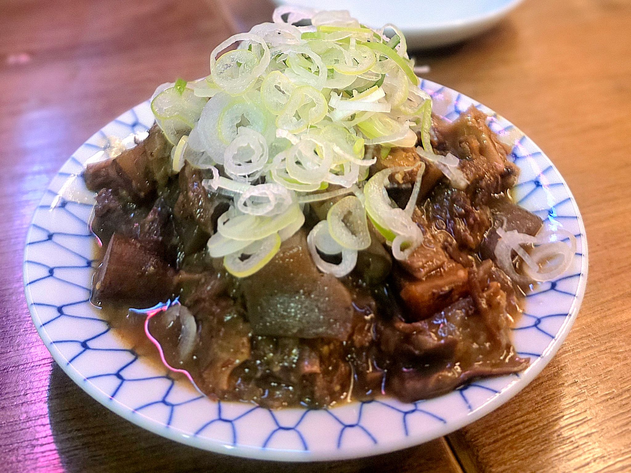 もつはしっかりと煮込まれており、箸を入れた瞬間にほろっとほどける柔らかさ。味噌が強く主張しすぎず、だしと脂の甘みがじんわり広がります。こういうお店は、最初の一皿で丁寧さが伝わりますね。