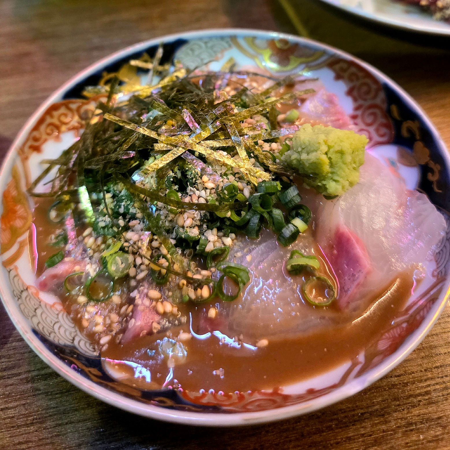 そして「胡麻カンパチ(780円)」。これは胡麻の香りがふわりと立ち、後からカンパチの上品な旨味が追いかけてきます。